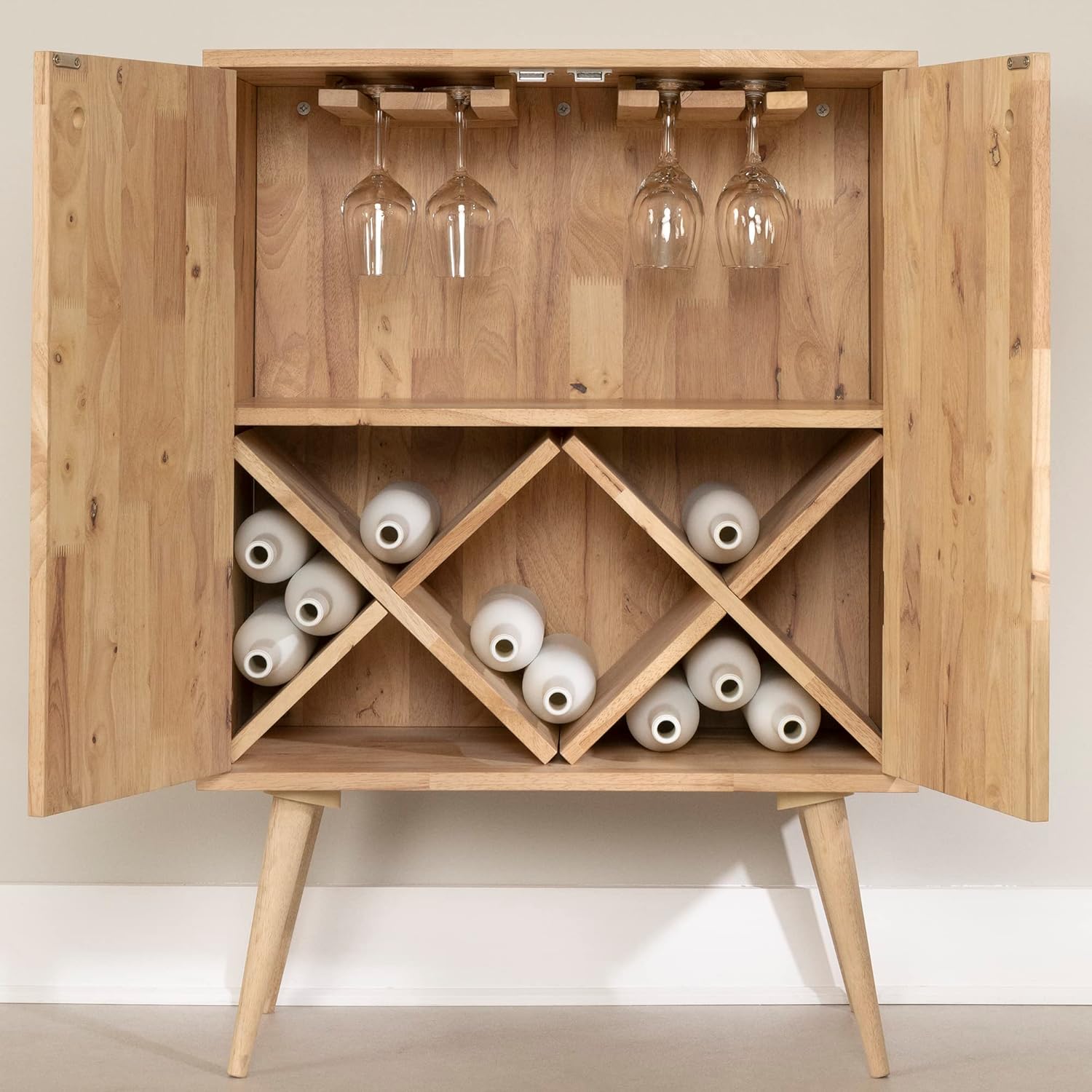 South Shore Kodali Solid Buffet with Wine Storage, Narrow, Natural Wood