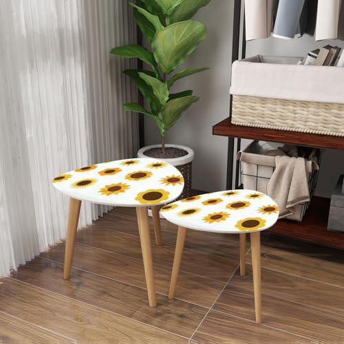 Triangle Nesting Coffee Table Set of 2 Summer cute hand drawn scandinavian style seamless pattern cottage Modern Minimalist Side Table Small End Table Leisure Tea Table Living room Bedroom Office