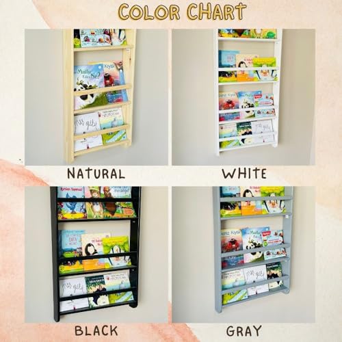 Handmade Solidwood Wall Mounted Montessori Kids Bookshelf, 4 tier Book Display for Children Bedroom, Nursery Furniture Bookcase, Wood Pine Tree Book Organiser for Living Room (Walnut)