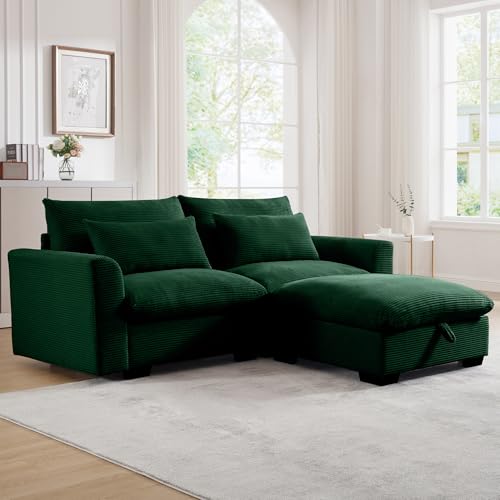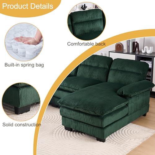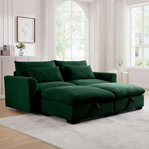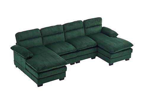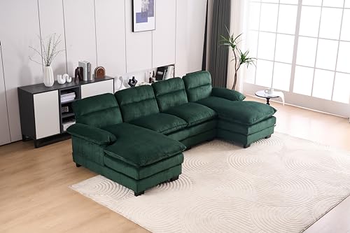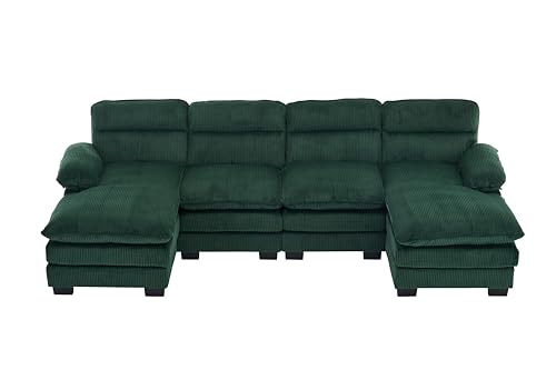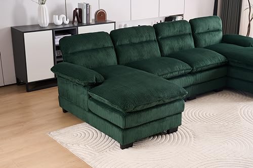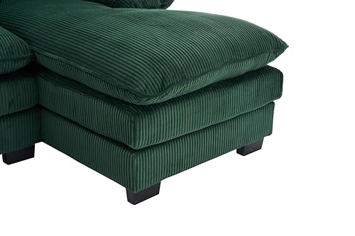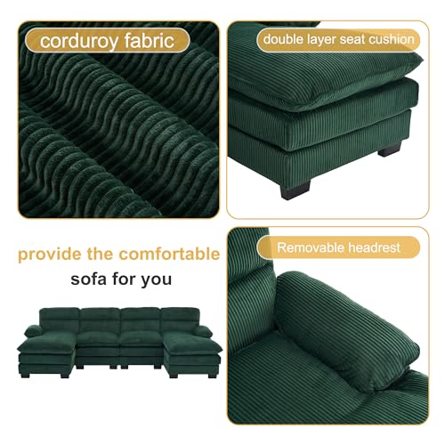 157.5" Corduroy Sectional Sofa Couch for Living Room U Shaped Couch Modular with Ottoman, Convertible Sectional Couch Oversized Upholstered Sofa for Spacious Space Green