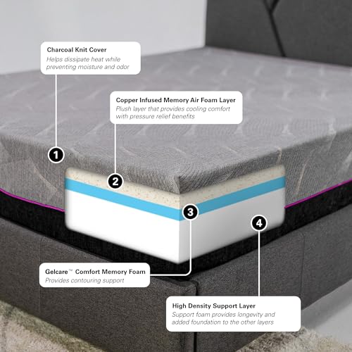 Bridgevine Home Flex Head 4-Layer Memory Foam Adult Mattress, 11 Inches, Mattress-in-a-Box, Queen Size, Charcoal Knit Cover