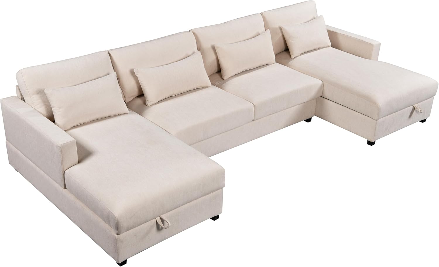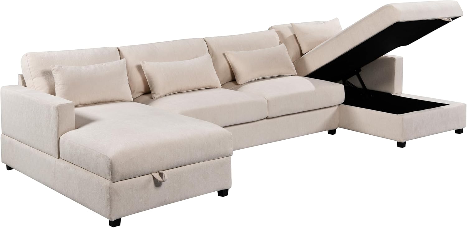 Modern Large U-Shape Sectional Sofa, 2 Large Chaise with Storage Space for Living Room, 4 Lumbar Support Pillows
