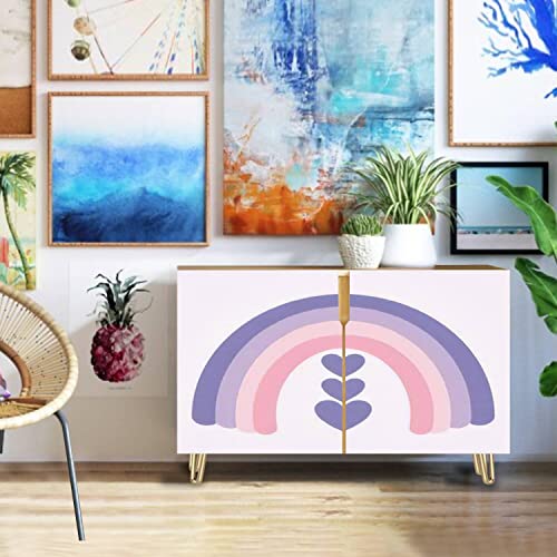 Scandinavian rainbow simple colors for nursery room decor Wooden Door Accent Cabinet 2 Doors Storage Table Bar Cabinet TV Stand Entryway Cabinet Sideboard for Kitchen Living Room Hallway