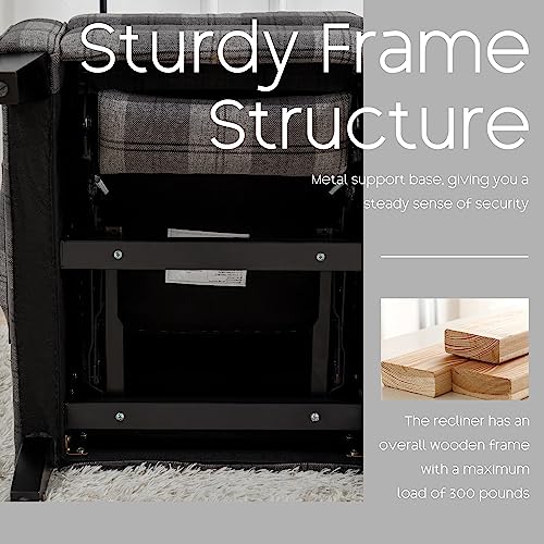 Recliner Chair Set of 2 - Manual Pushback Adjustable Reclining Fabric Single Lazy Boy Accent Sofa for Living Room Small Spaces Adults Wingback Dark Grey