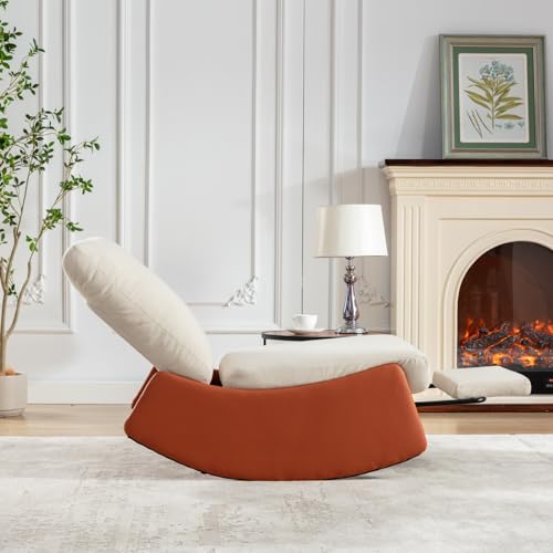 Modern Rocking Recliner, Nursery Footrest, Accent Reading, Upholstered Lounge Chair Soft Padded Rocker for Living Room, Adjustable Backrest, Easy Installation, Orange