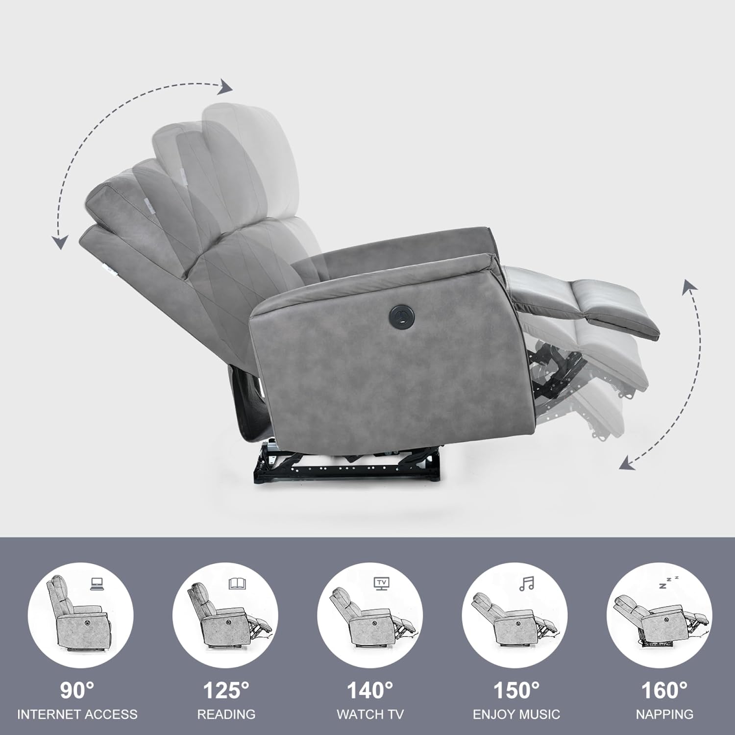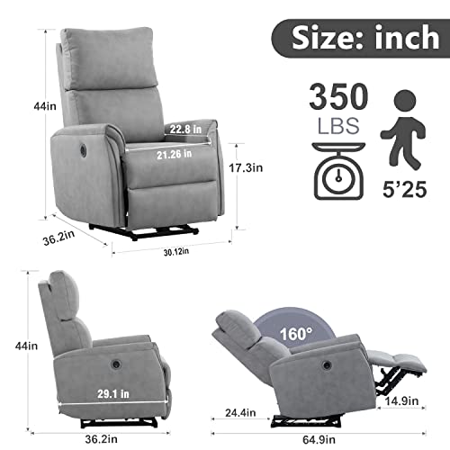 Electric Power Recliner Chair, Reclining Chair for Bedroom Living Room,Small Recliners Home Theater Seating, with USB Ports,Recliner for small space,Dark Gray