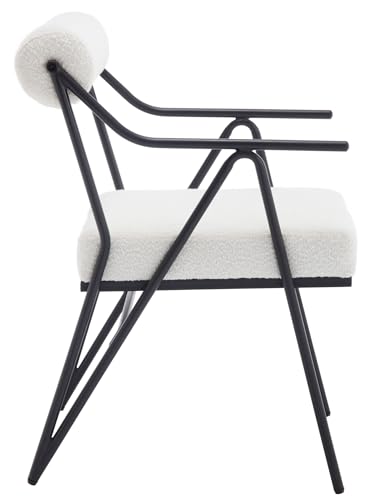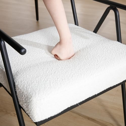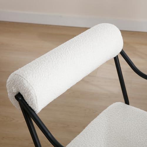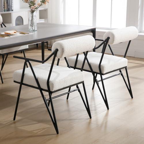 Modern Dining Chairs Set of 2, White Sherpa Upholstred Side Arm Chairs Mid-Century Open Back Kitchen Chairs Black Metal Legs for Kitchen Dining Room