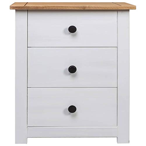 Bedside Cabinet White 18.1"x15.7"x22.4" Pinewood Panama Range,Bedside Cabinet, Modern Wooden Nightstand with 3 Drawers, White and Naturally Bedroom Furniture