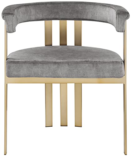 Meridian Furniture Marcello Collection Modern | Contemporary Velvet Upholstered Dining Chair with Brushed Brass Iron Frame, Set of 2, 23.5" W x 24" D x 28" H, Black