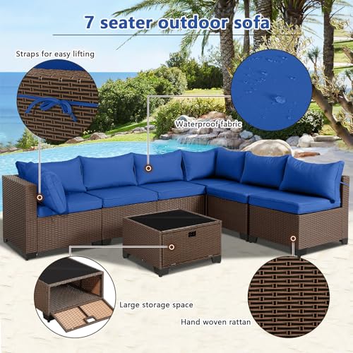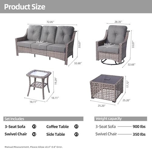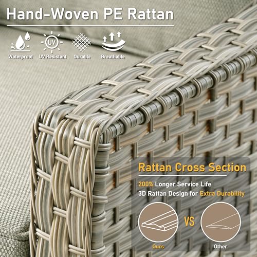 MAGIC UNION 6 Piece Outdoor Patio Furniture Set Sectional Conversation Set with Coffee Table, Cushions, Wicker Rattan and Steel Frame for Backyard Balcony Poolside (Gray Rattan Khaki Cushion)