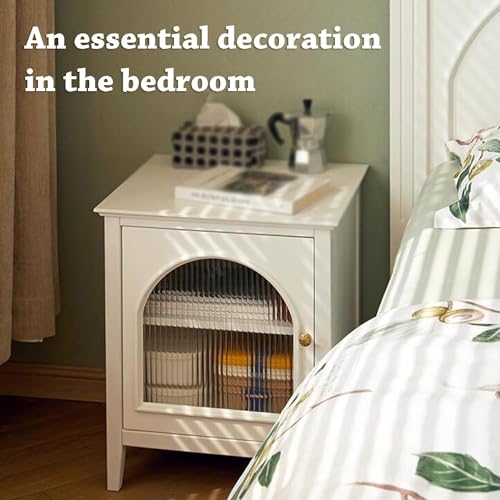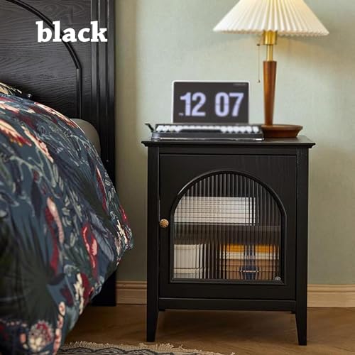 nightstand Wooden Nightstand Bedroom Bedside Table with Storage Adjustable Inner Divider Glass Door Bedside Cabinet End Table Minimalist (Pink Left)