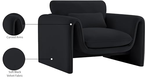 Meridian Furniture Sloan Collection Modern | Contemporary Upholstered Chair with Soft Velvet Fabric, Curved Arms, 42" W x 38" D x 31" H, Cream