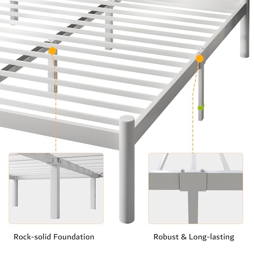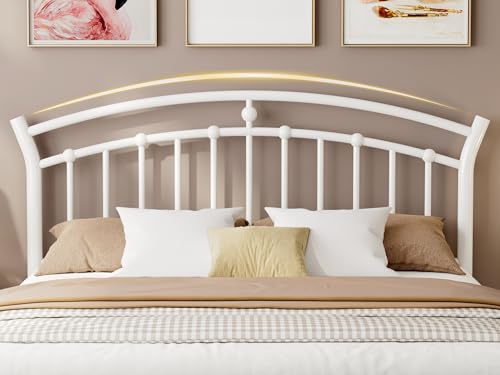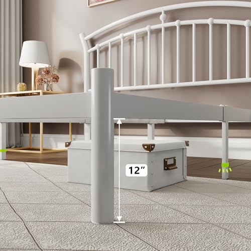 iPormis Queen Size Metal Platform Bed Frame with Modern Iron-Art Headboard/Heavy Duty Steel Slats Support/Under Bed Storage/No Box Spring Needed/Easy Assembly/Noise-Free/White