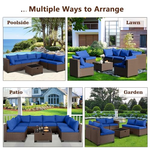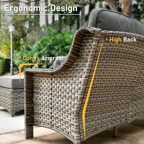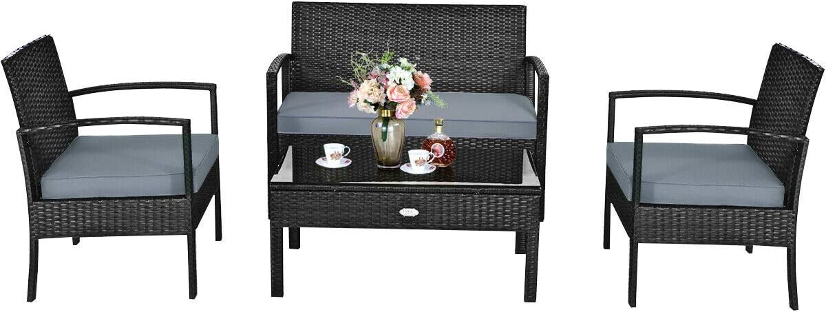 HAPPYGRILL 4-Piece Patio Furniture Set Rattan Wicker Sofa & Coffee Table Outdoor Conversation Set for Patio Garden Poolside