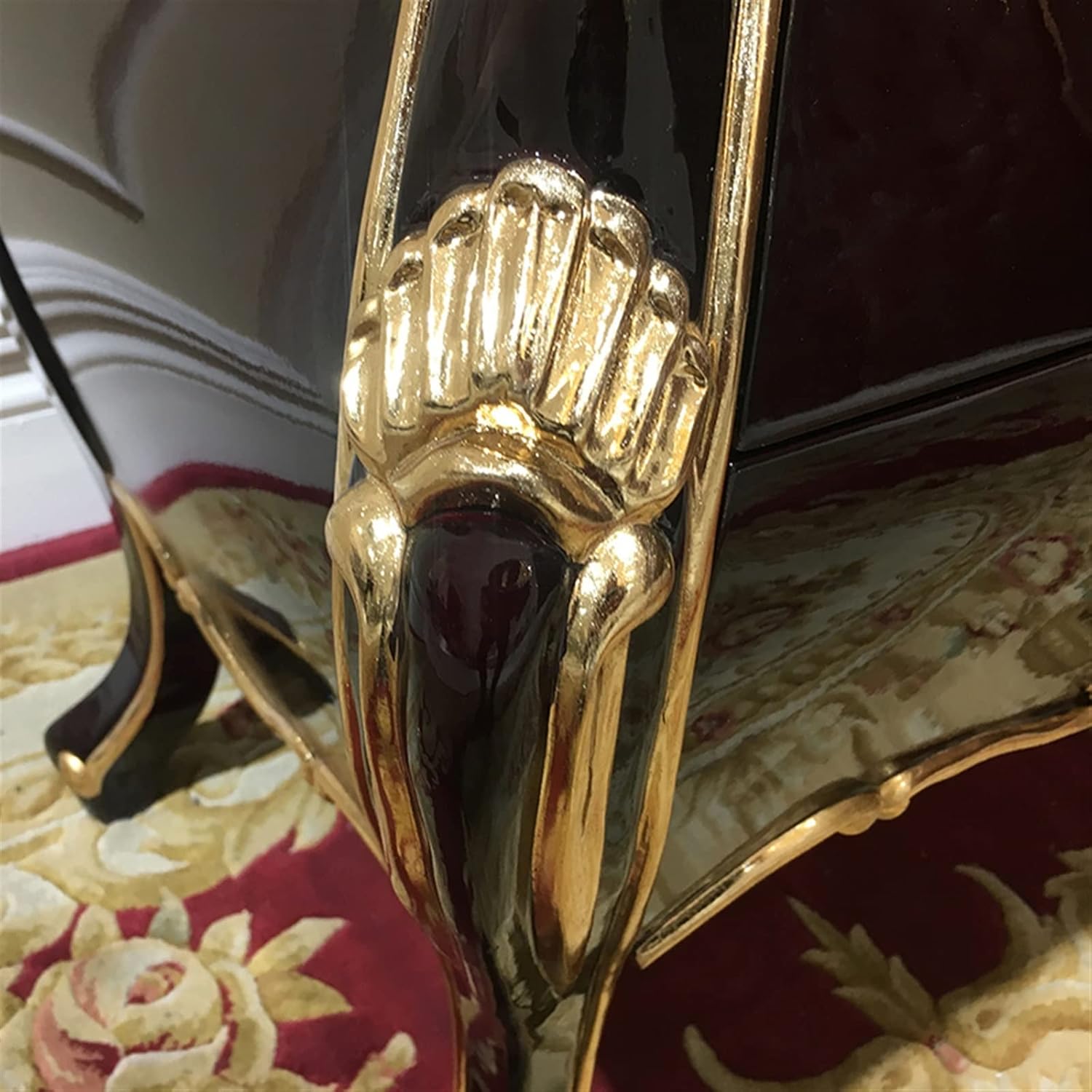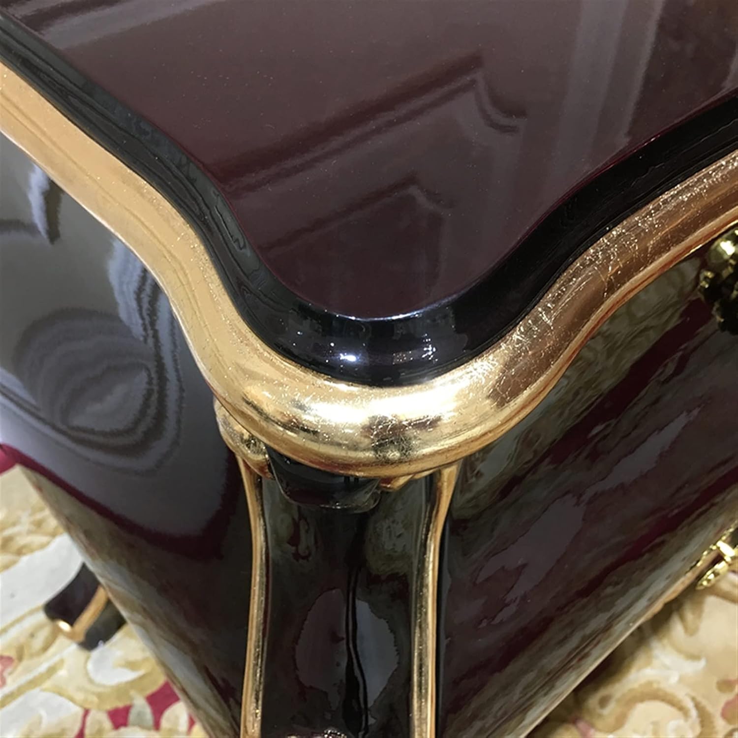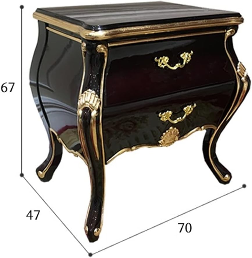 Bedside Cabinet Double-Decker Drawers Bedroom lockers Corner Carved Solid Wooden feet