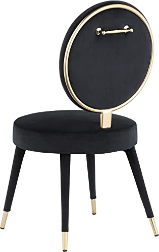 Meridian Furniture Brandy Collection Modern | Contemporary Velvet Upholstered Dining Chair with Brushed Brass Iron Legs, Set of 2, 19" W x 23" D x 35.5" H, Black