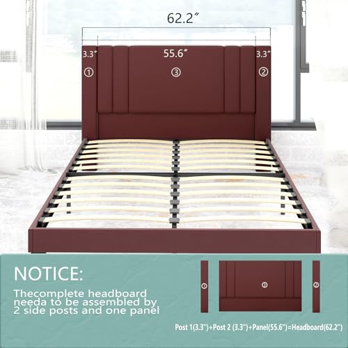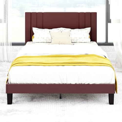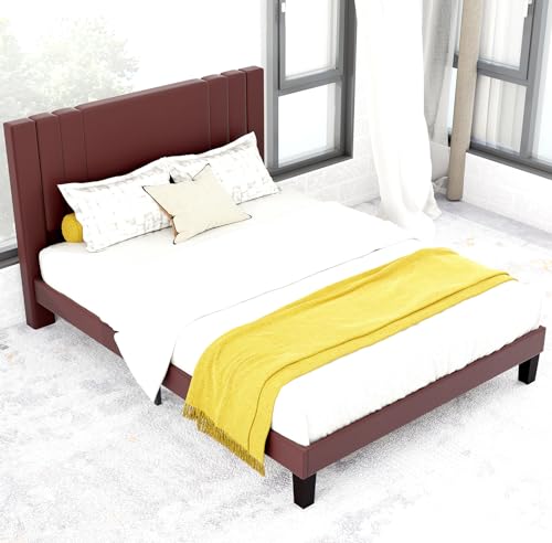 Tyndall Queen Size Bed Frame, Faux Leather Upholstered Platform with Headboard, Easy Assembly, No Box Spring Needed, Non-slip and Noise-free with Strong Wooden Slats (Queen (U.S. Standard))