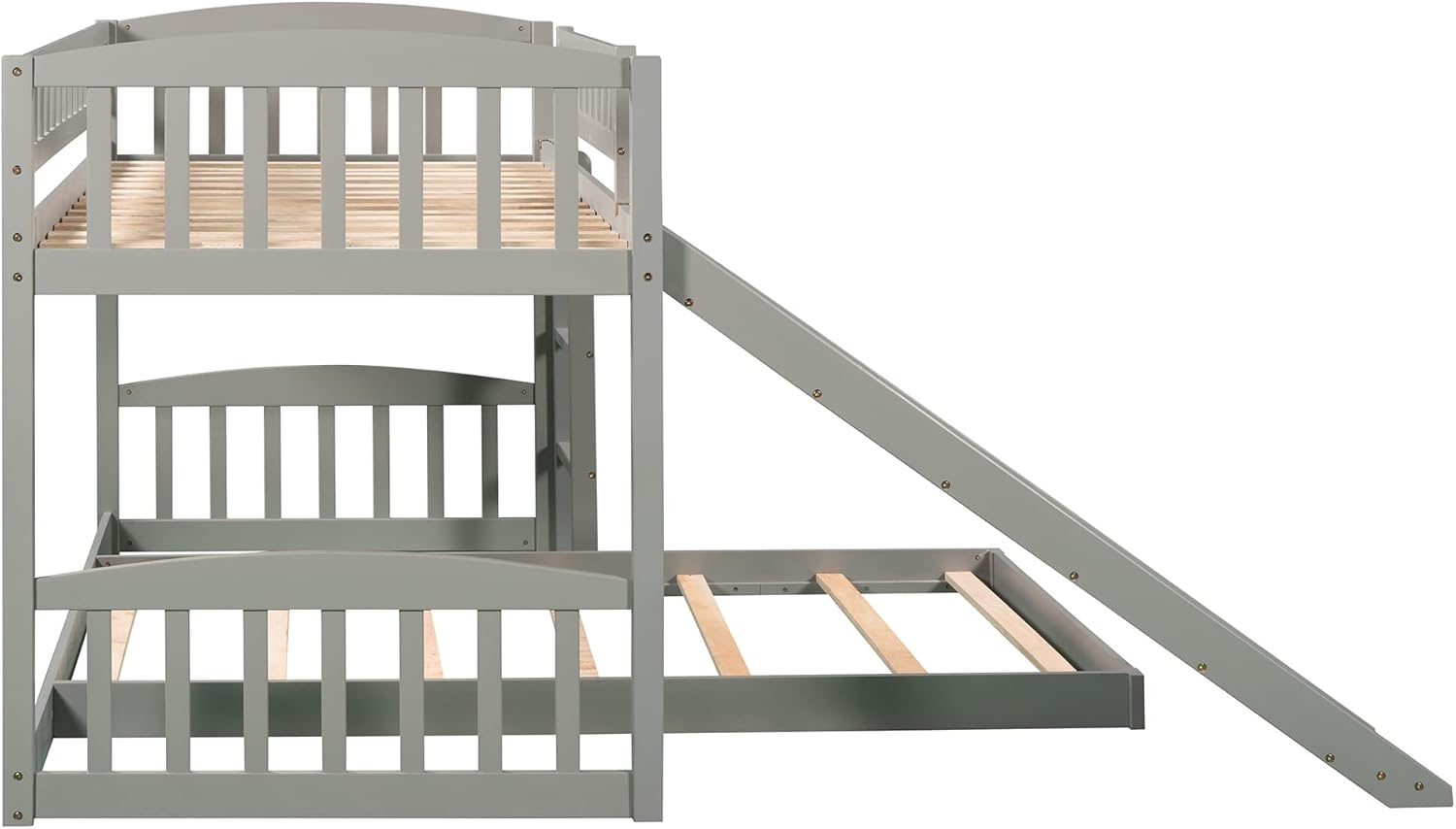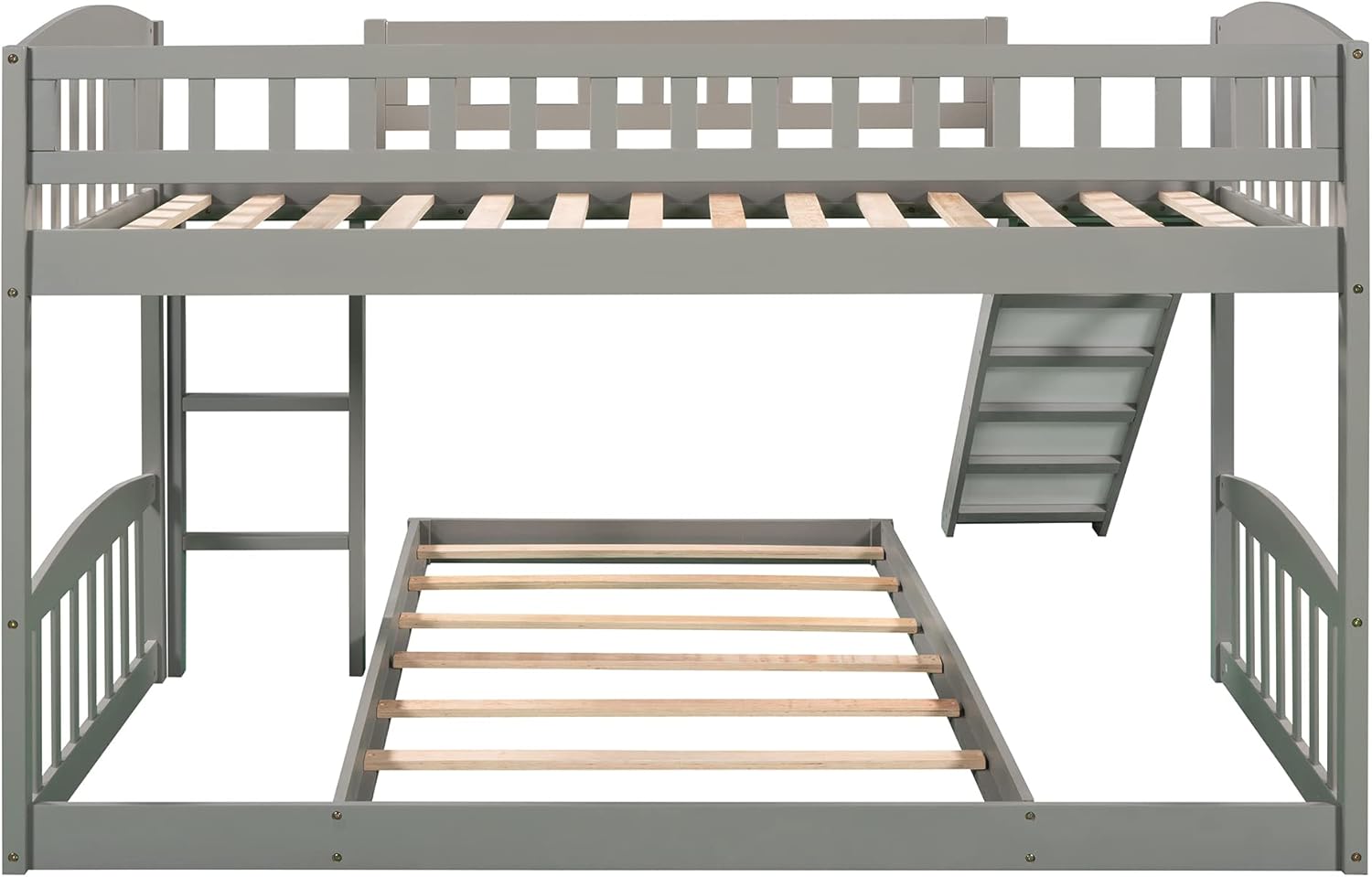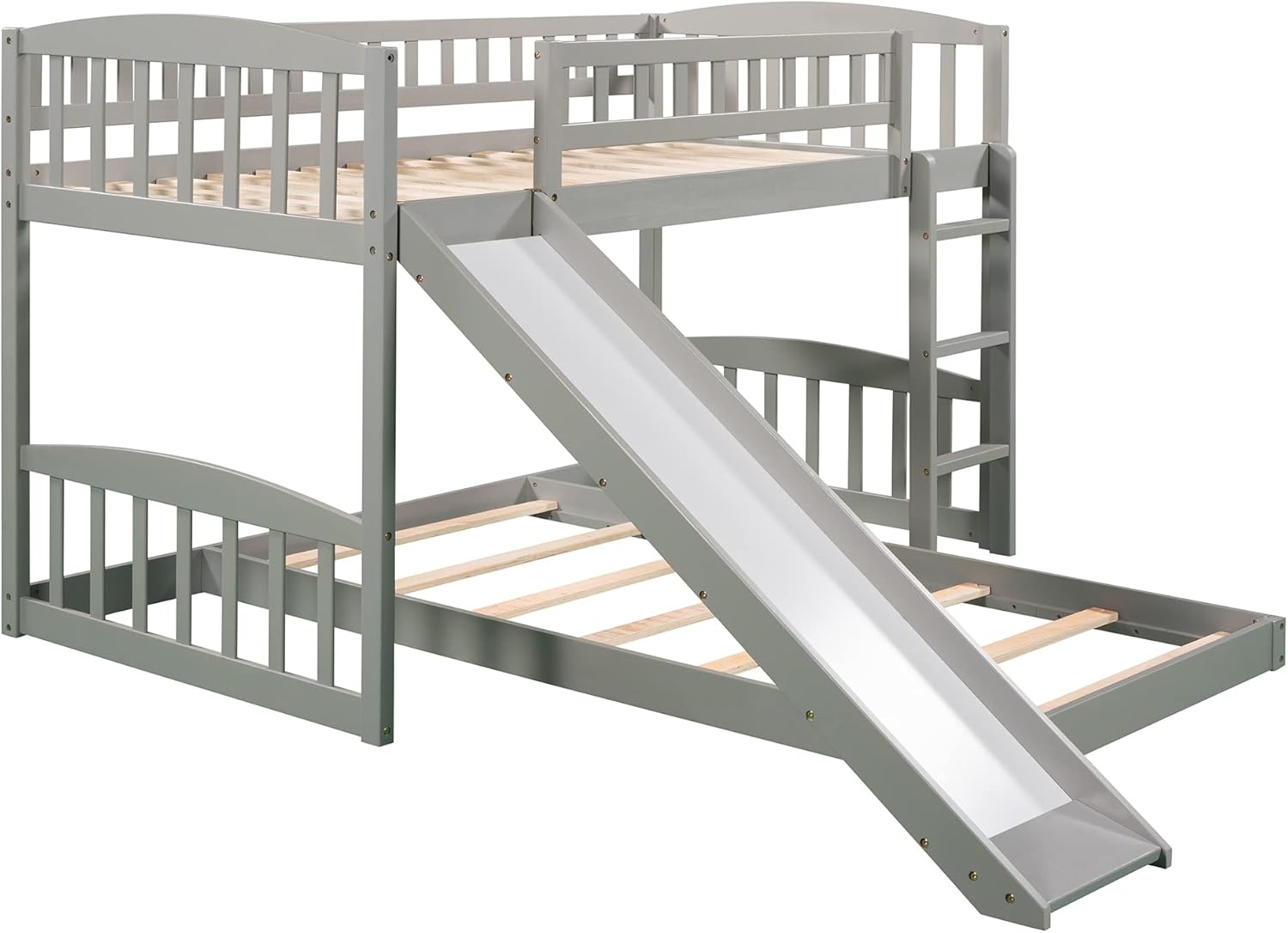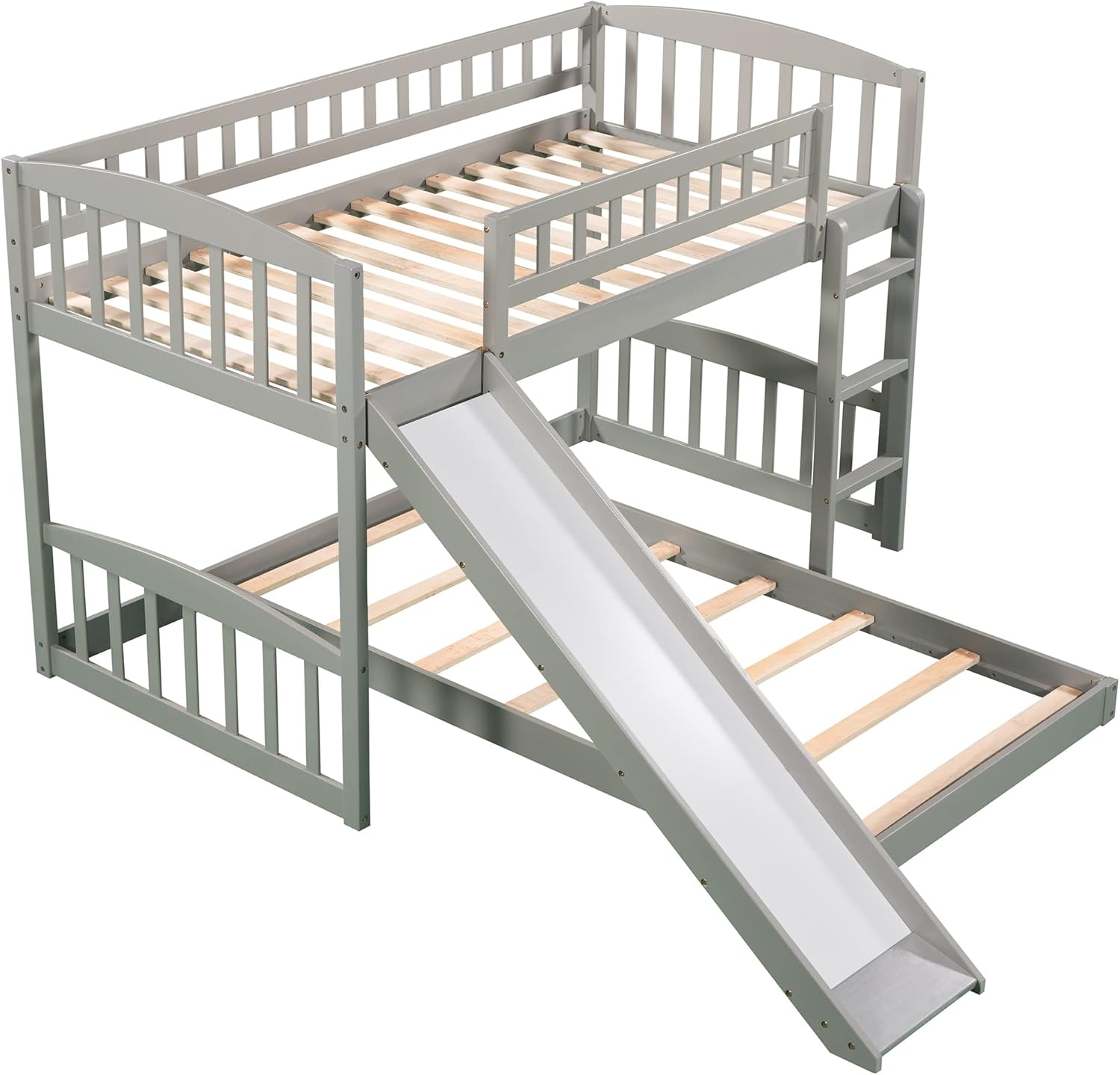 Harper & Bright Designs Low Bunk Bed Twin Over Twin, Wood Floor Bunk Bed with Slide and Ladder, L-shape Bunk Bed for Kids Toddlers Teens Boys & Girls (Gray)