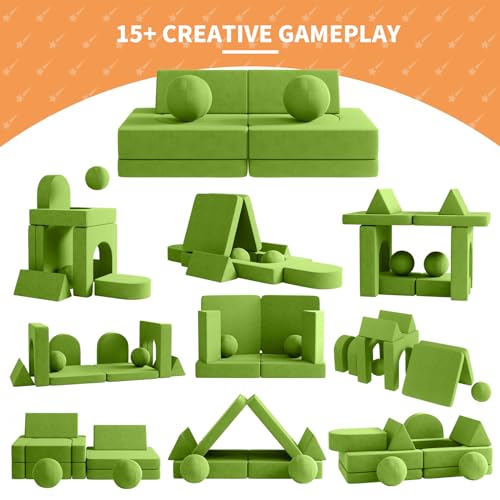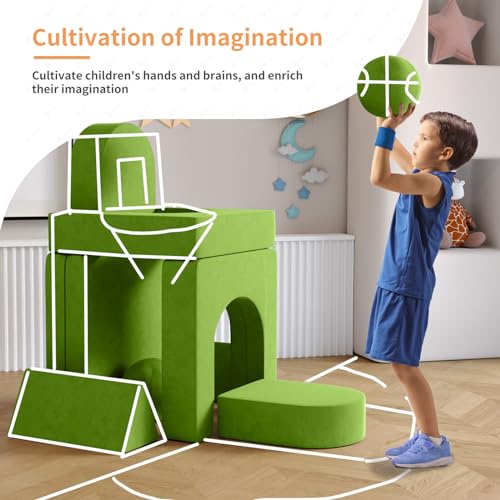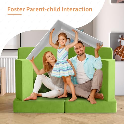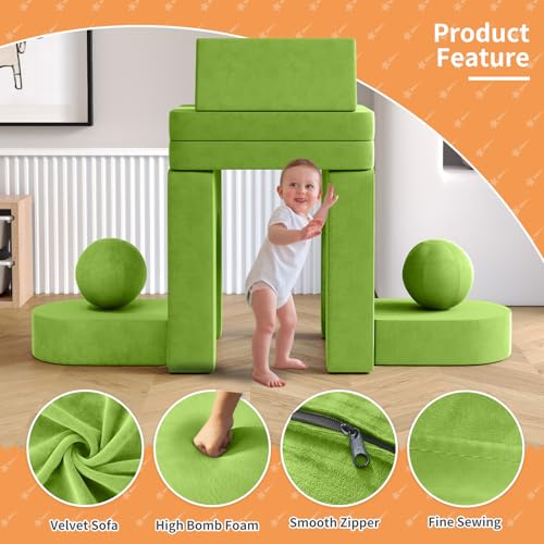 wanan Kids Couch Toddler Couch 10pcs Kids Sofa Couch with 2 Balls and Tunnel, Toddler Sofa Kids Fold Out Couch for Playroom Bedroom, Creative Baby Couch Kids Foam Couch (Grey)