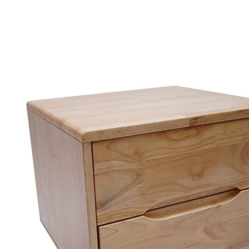 Mid Century Modern Handle Wood Nightstands Side Table Bedroom Storage Drawer Bedside End Table, 2 Drawer (Raw Wood Color)