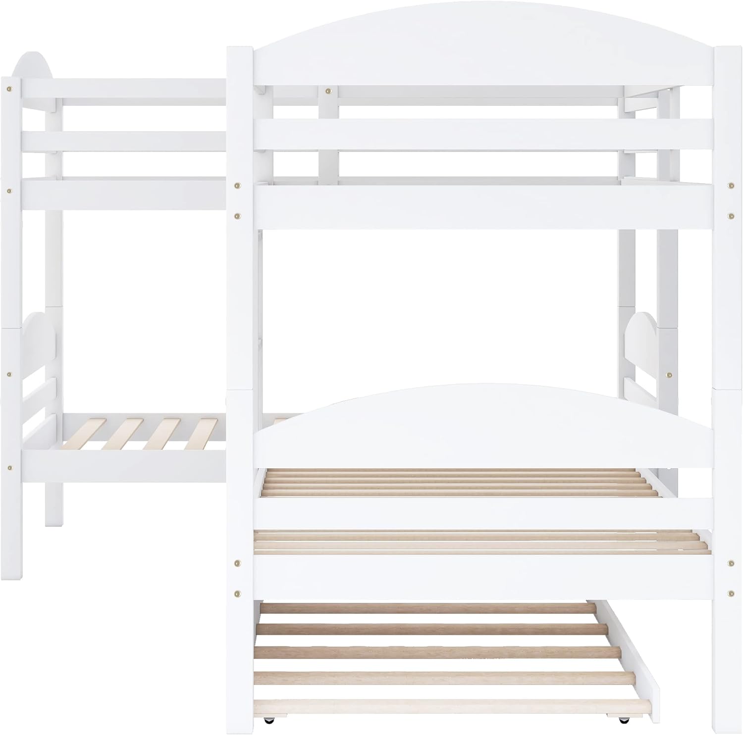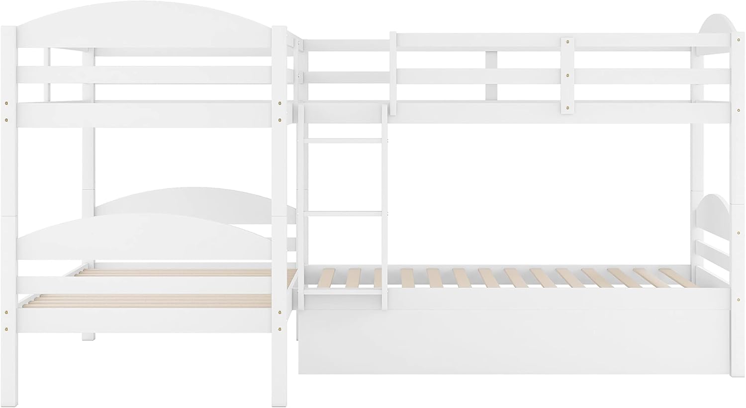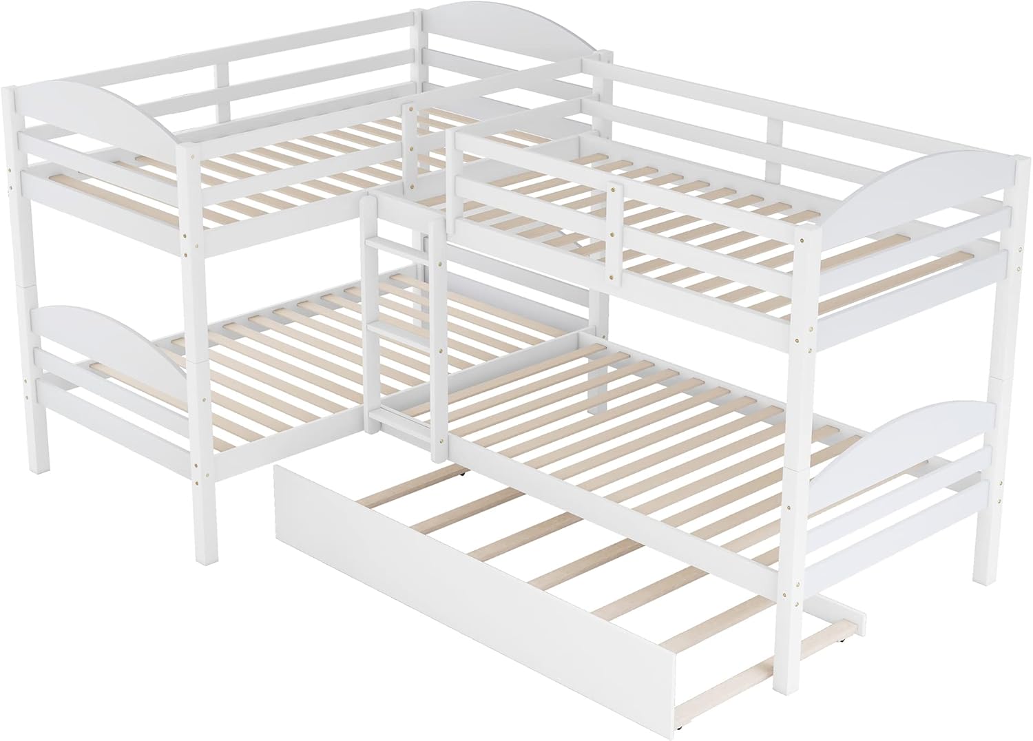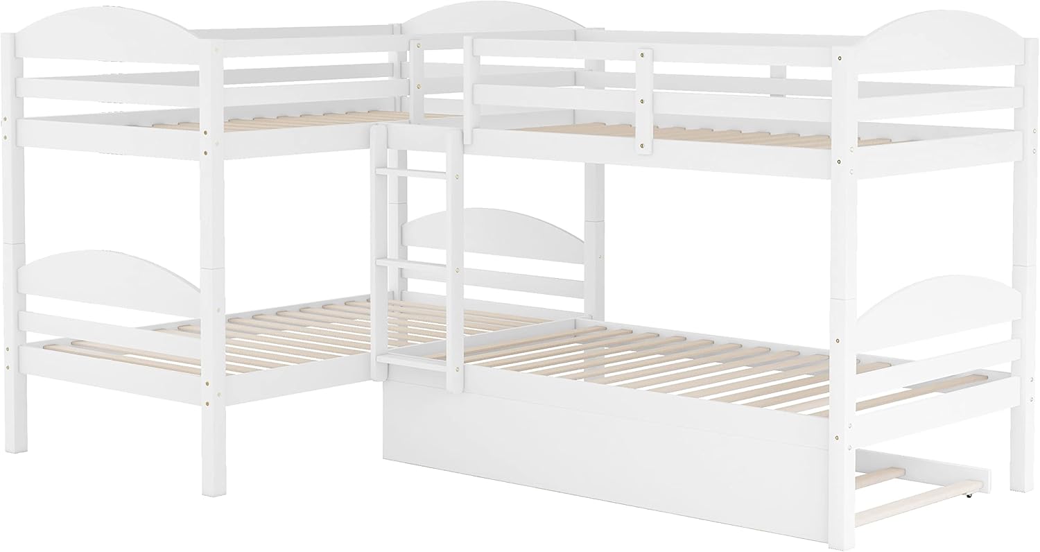 Bellemave Quad Bunk Bed with Trundle L-Shape Bunk Bed Twin Over Twin Corner Bunk Bed for 4 or 5 Kids Boys Girls Teens, White