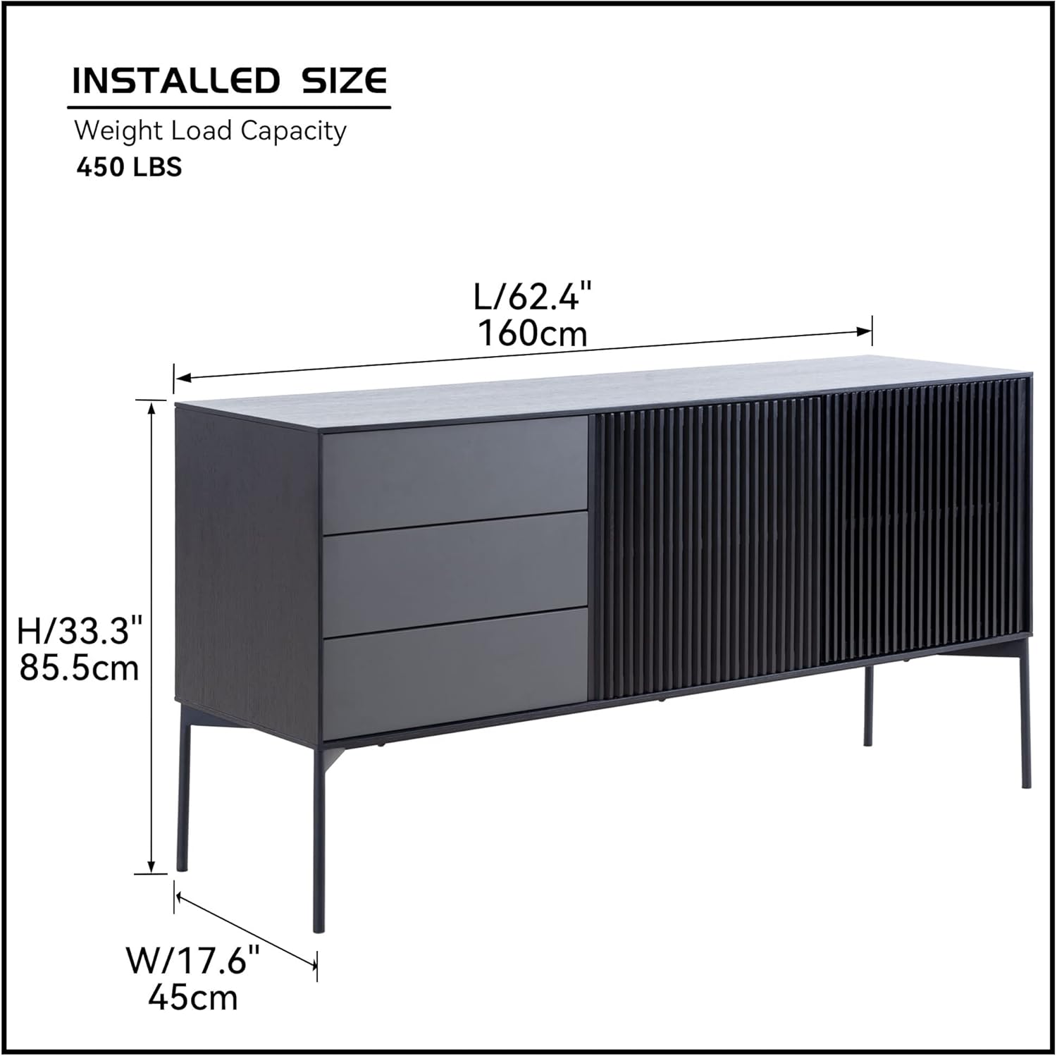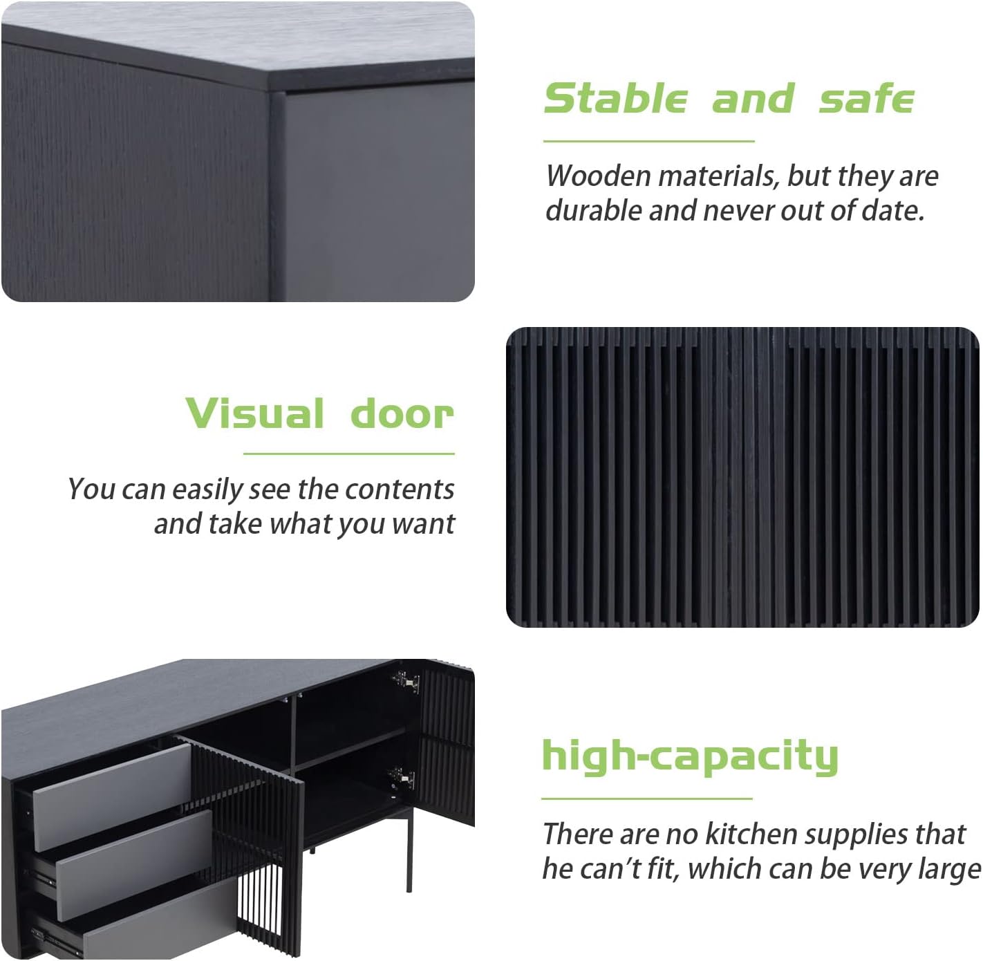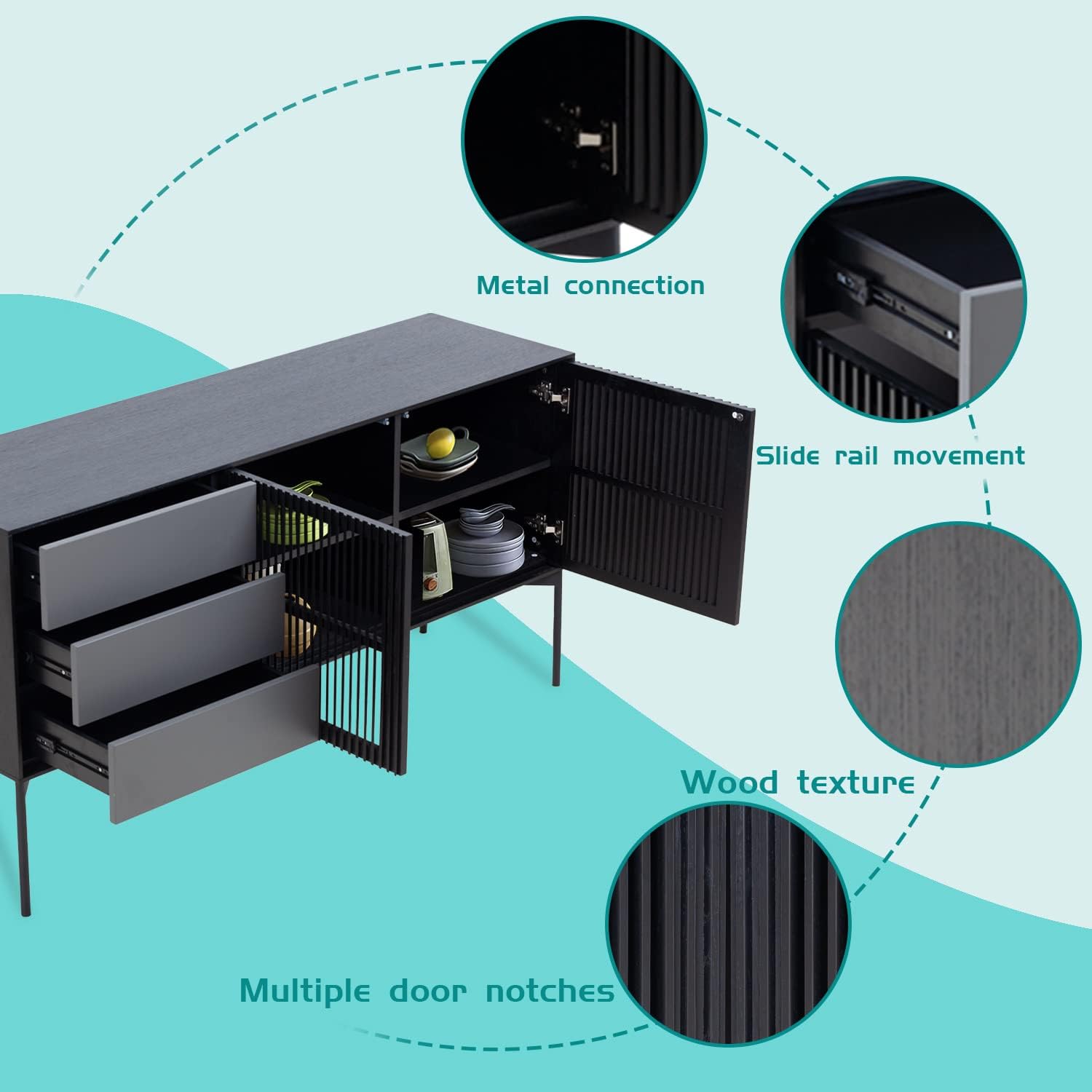 Sideboard Buffet Cabinet, Modern Kitchen Buffet Storage Cabinet with Double Doors, Cupboard Console Table for Living Room, Dining Room, Hallway, Black Accent Side Cabinet, Bar Liquor Cabinet