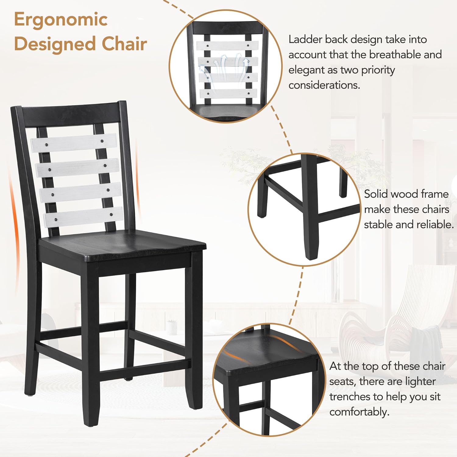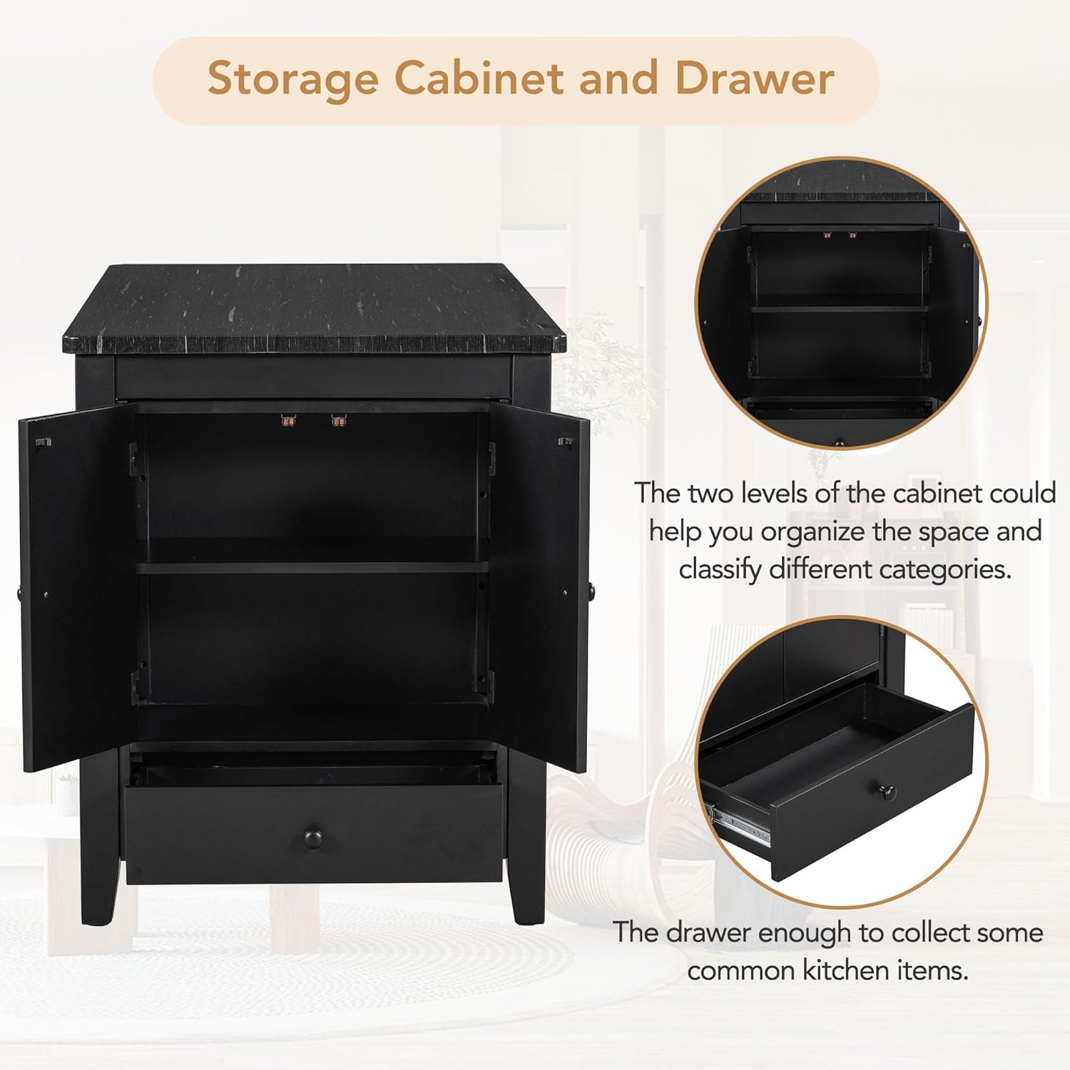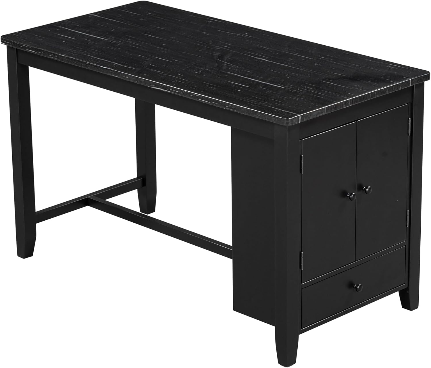 5-Piece Counter Height Wood Dining Table Set with Faux Marble Tabletop, Storage Cabinet and Drawer & 4 Matching Chairs, Black