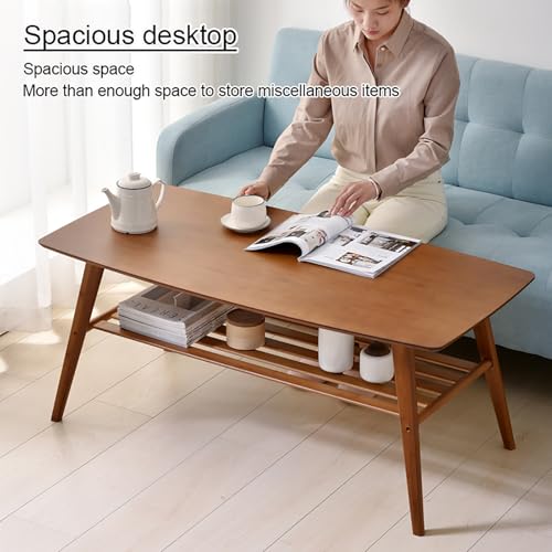 Wood Coffee Table,2-Story Coffee Table,Rustic 2-Tier Rectangle Coffee Table with Open Storage Shelf,for Living Room,Bedroom,Home Office(B,100x50x60cm)