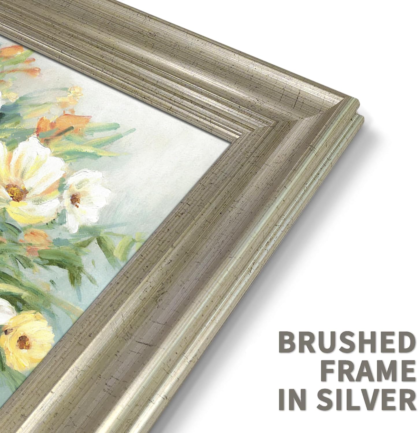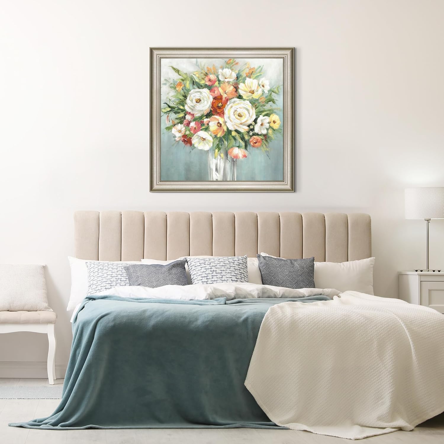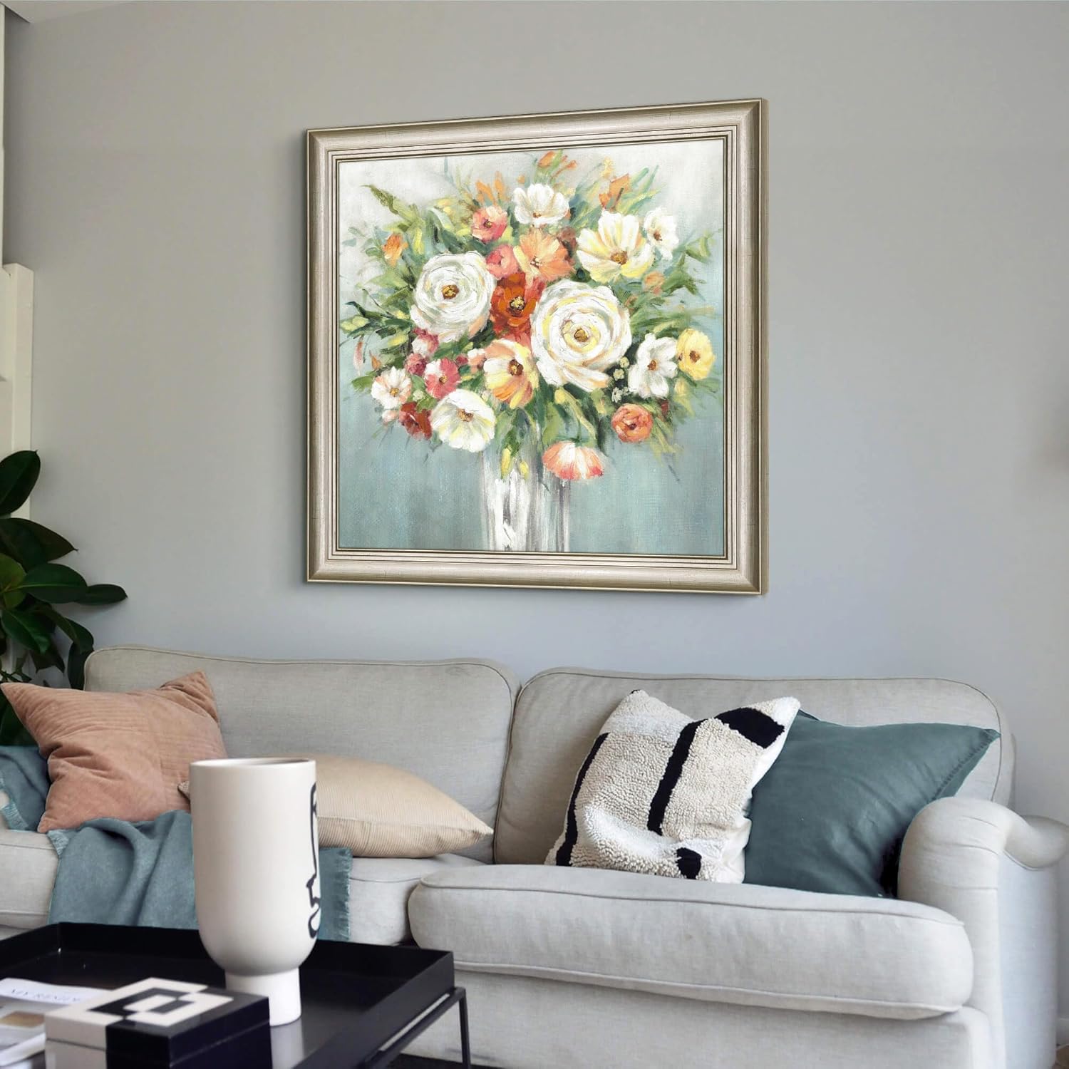 Abstract Floral Framed Wall Art: Blossom Flowers in Vase Picture Hand Painted Textured Rose Bouquet Canvas Painting Large Botanical Print Elegant Artwork for Living Room Bedroom Bathroom
