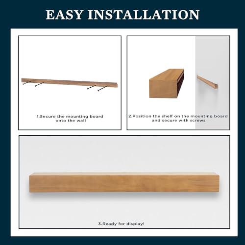 MANTELSDIRECT Dakota 60 Inch Pine Wood Floating Fireplace Mantel Shelf - Mocha Brown | 9" Depth - Beautiful Wooden Rustic Mantel for Fireplaces, Living Rooms, Electric Fireplaces, and below TVs