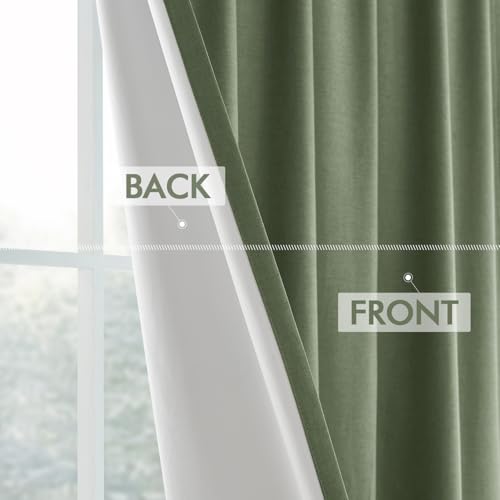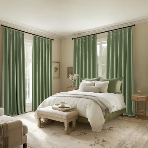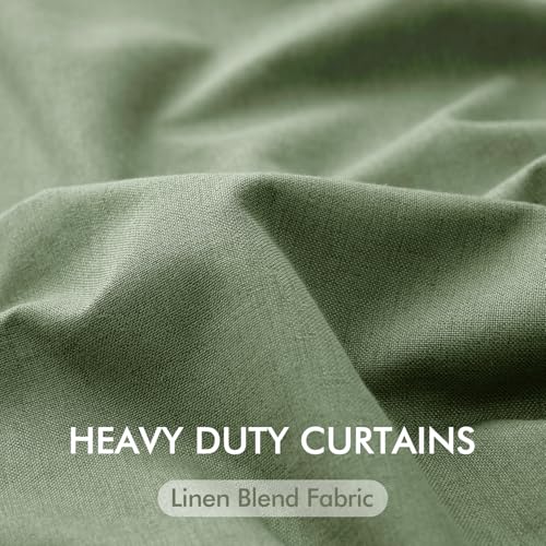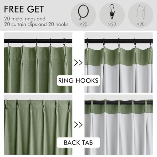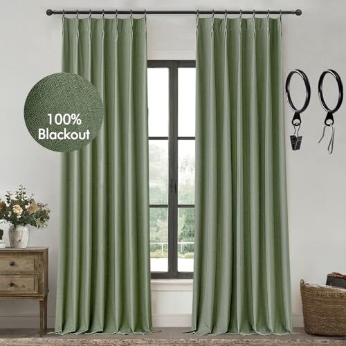 MIULEE Olive Green Pinch Pleat Linen Blackout Curtains 90 Inches Long Thermal Insulated Room Darkening Window Drapes for Living Room Bedroom Track System Back Tab Noise Reducing Pleated 2 Panels