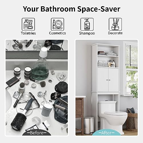 Shintenchi Over The Toilet Storage Cabinet, Bathroom Shelf Organizer with Anti-Tip Device Small Freestanding Space Saver with Adjustable Shelf, Gray