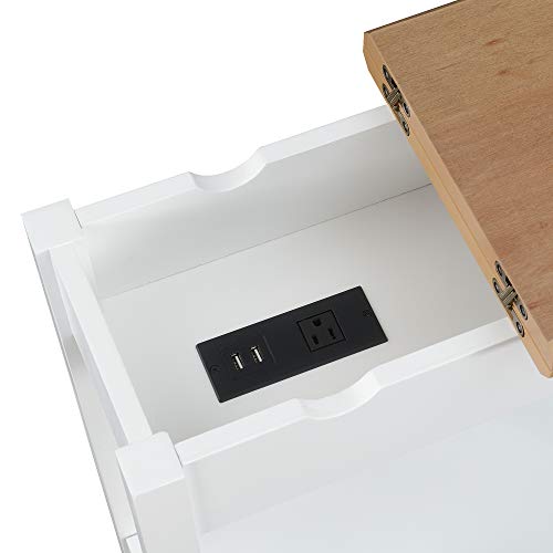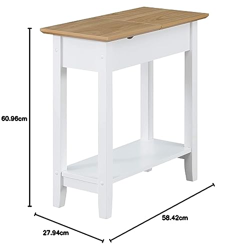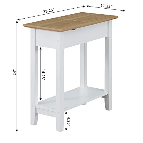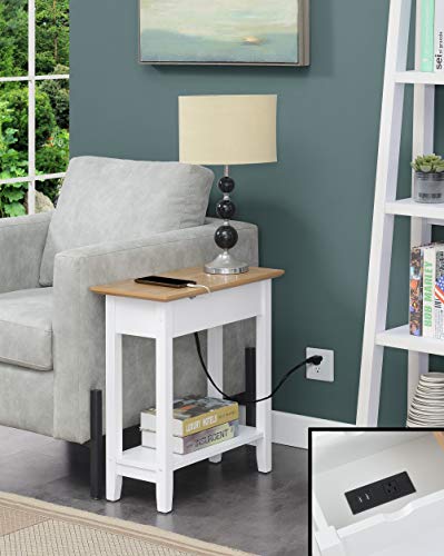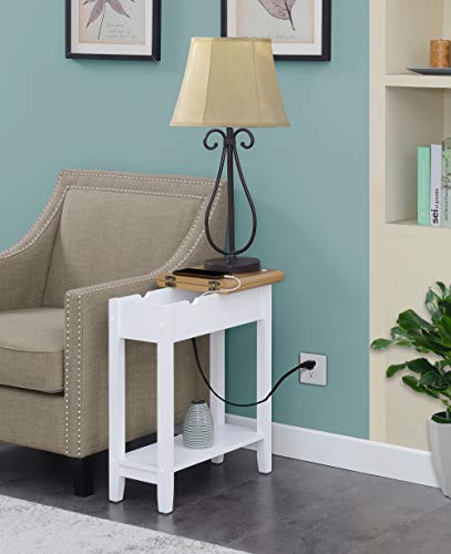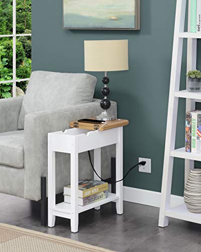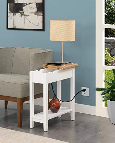 Convenience Concepts American Heritage Flip Top End Table with Charging Station and Shelf, Driftwood/White