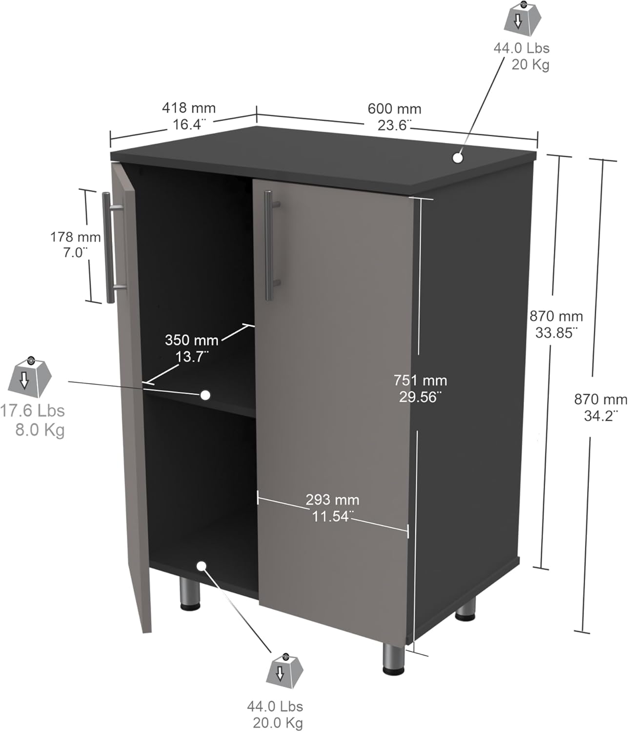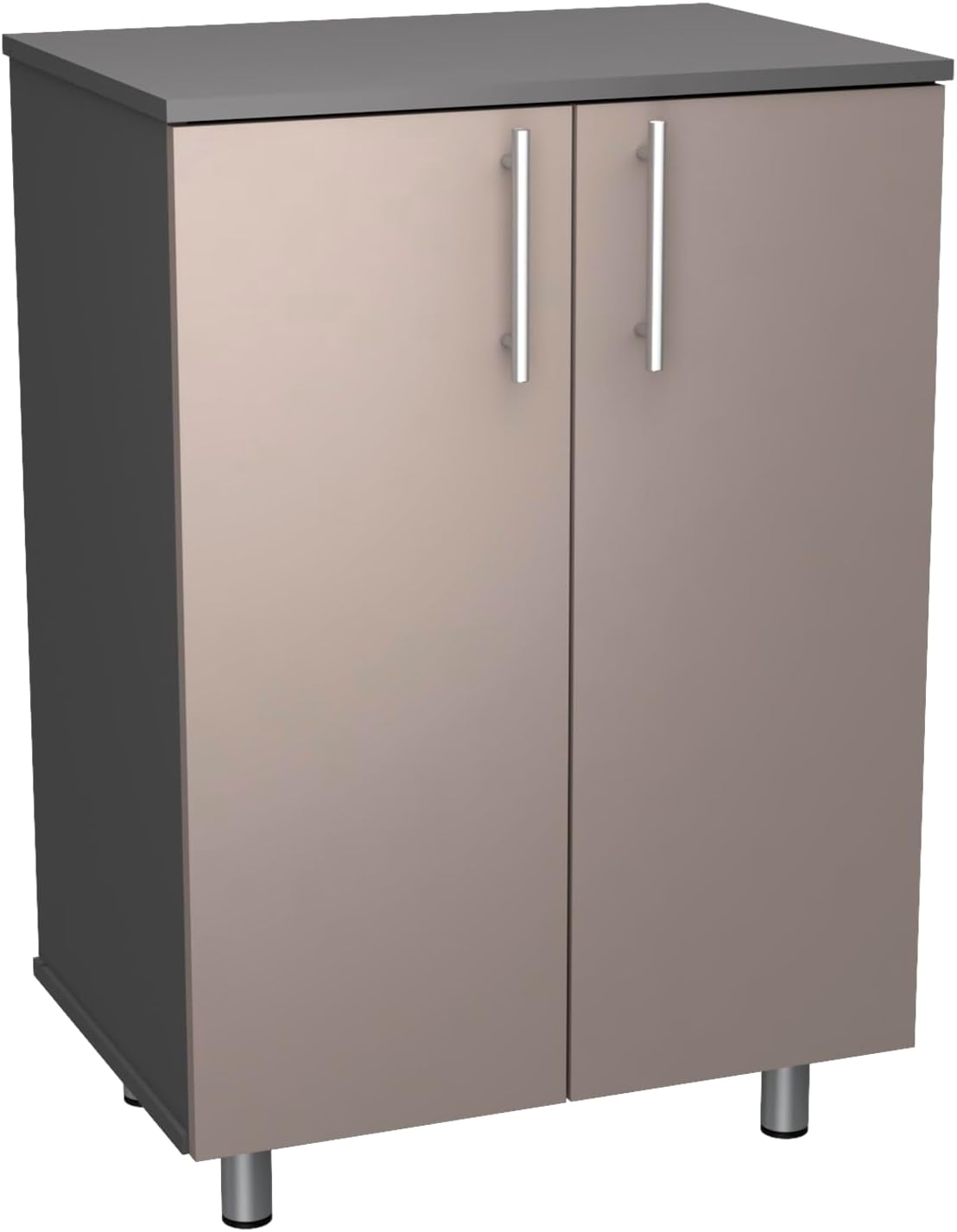 Inval Maestrik 2-Door Storage Cabinet, Taupe, Dark Gray & Maple