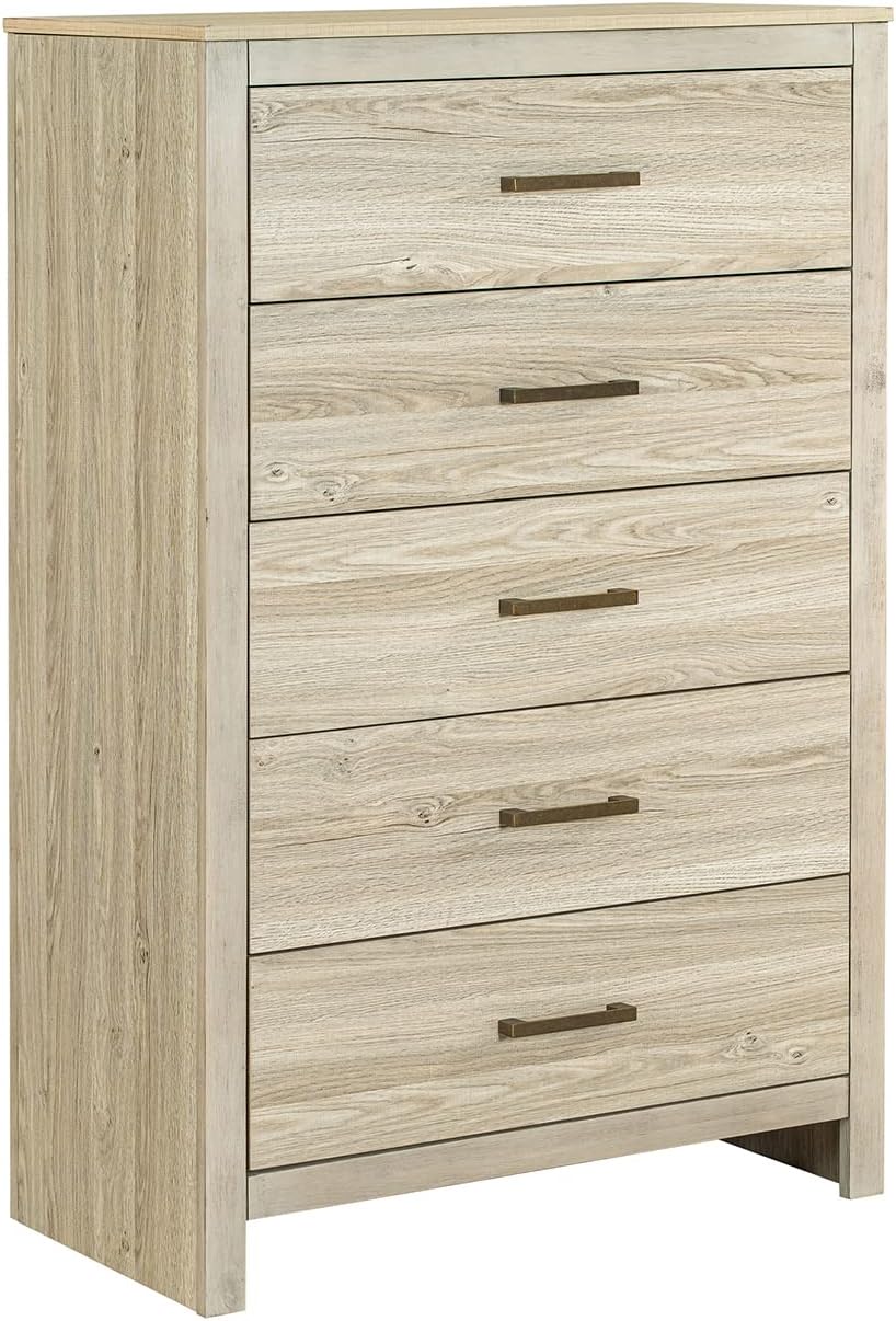 Yoluckea Contermpery Wooden 5-Drawer Dresser for Bedroom Nursery 50" Tall Chest of Drawers Modern Accent Storage Cabinet Drawer Organizer with Brase Metal Handles and Solid Wood Frame -Maple