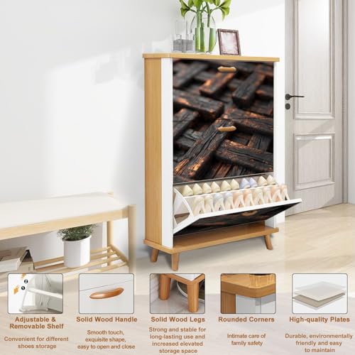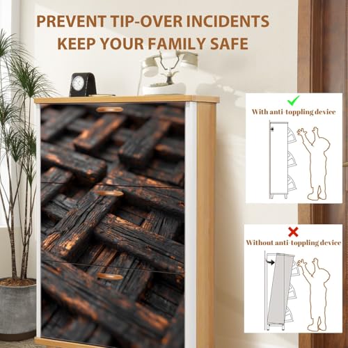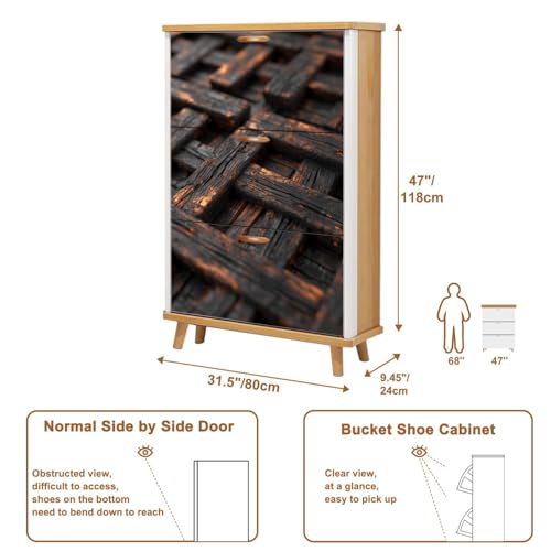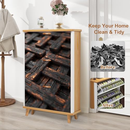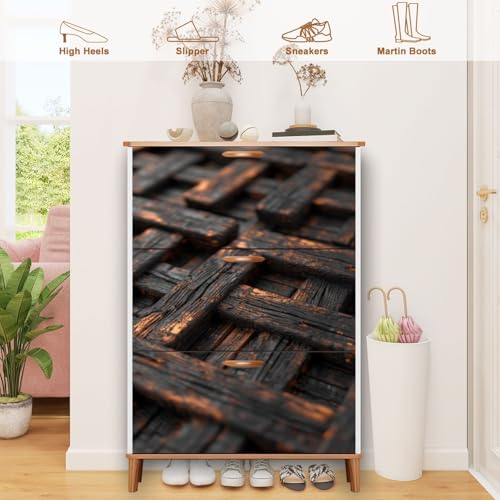 Shoe Cabinet with 3 Flip Drawers 3D Seamless Wood Parquet Floor Maple Pine Cherry Textures Wooden Shoe Storage Cabinet Boho Freestanding Hidden Shoe Rack Slim Shoe Organizer for Entryway