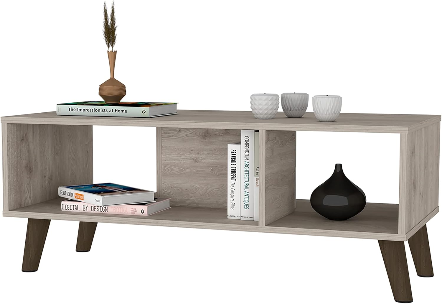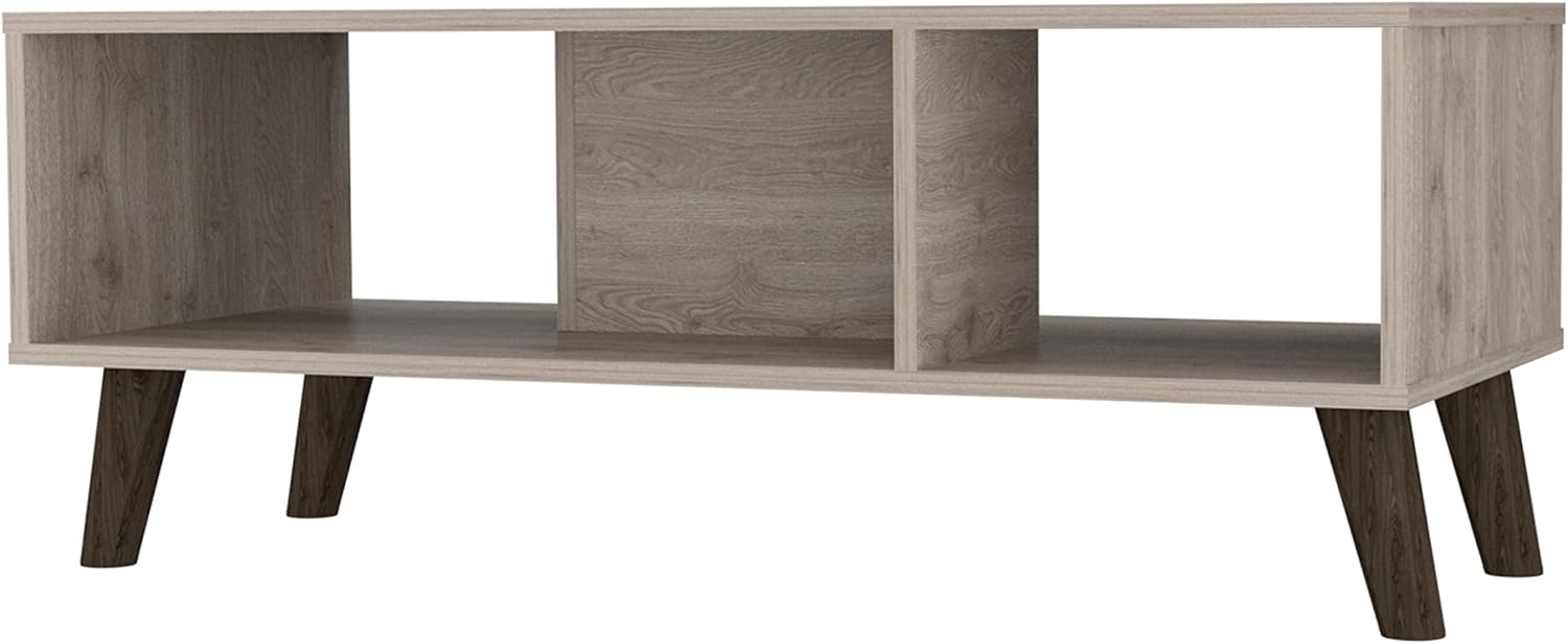 Coffee Table Two Open Shelves Four Legs Grey Modern Contemporary Rectangular MDF Natural Finish Includes Hardware