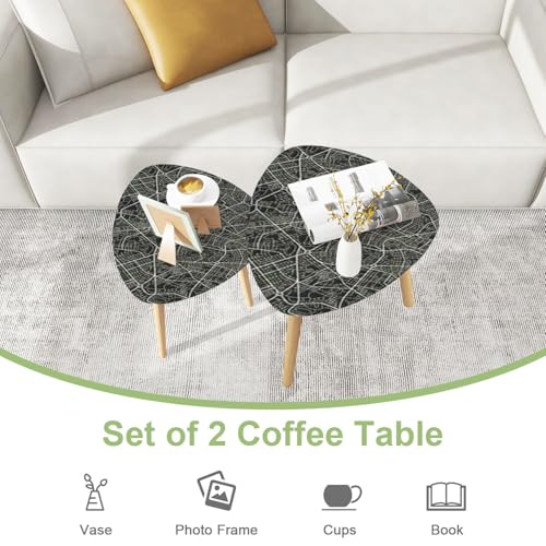 Triangle Nesting Coffee Table Set of 2 Forest panorama view Pine tree landscape Spruce silhouette Modern Minimalist Side Table Small End Table Leisure Tea Table Living room Bedroom Office