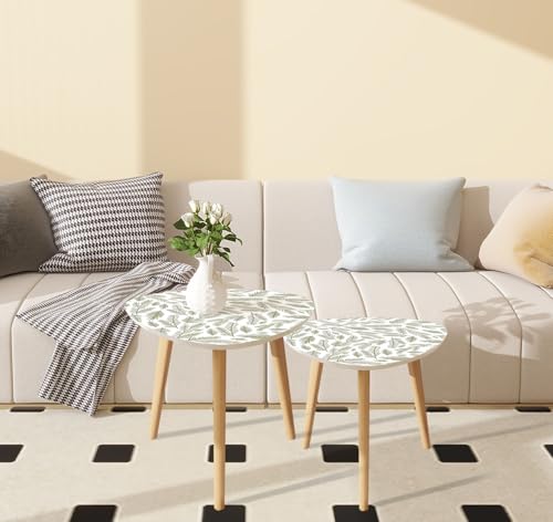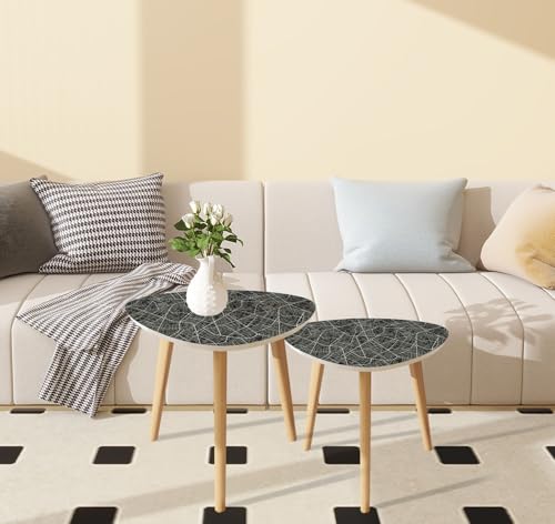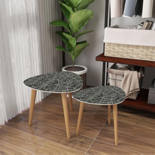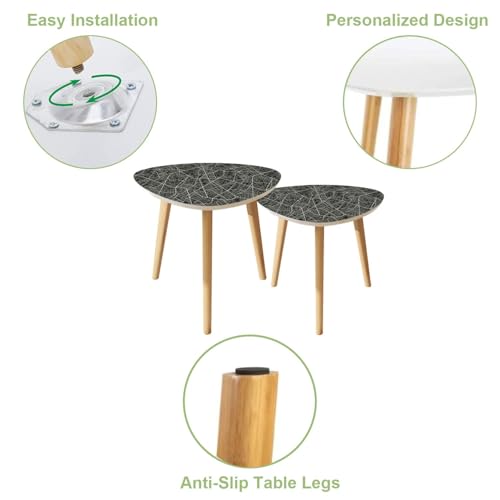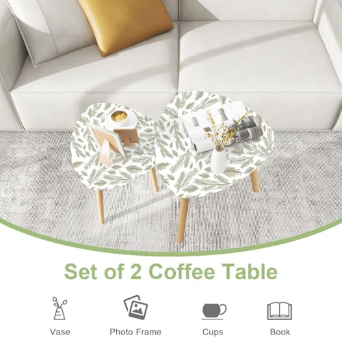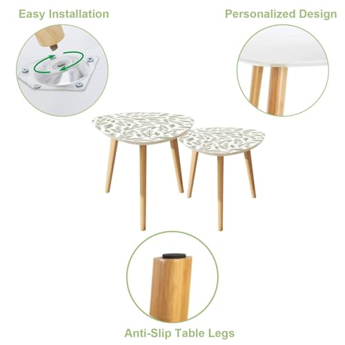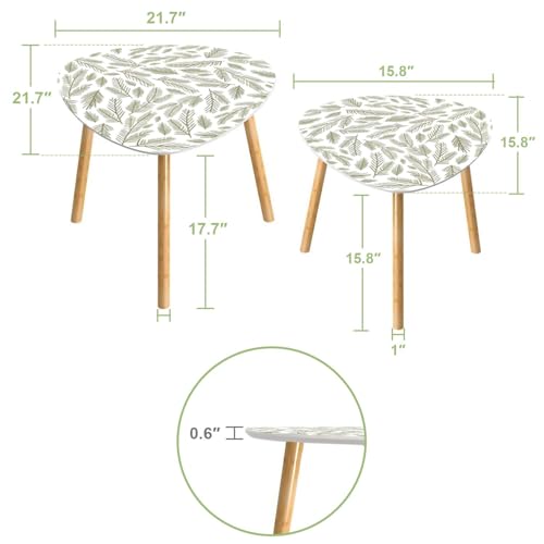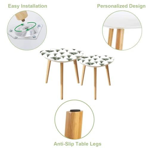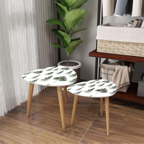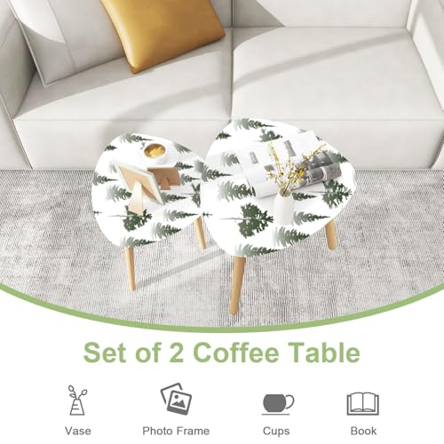 Triangle Nesting Coffee Table Set of 2 Forest fir Trees Silhouette Coniferous Green Spruce White Modern Minimalist Side Table Small End Table Leisure Tea Table Living Room Bedroom Office