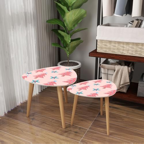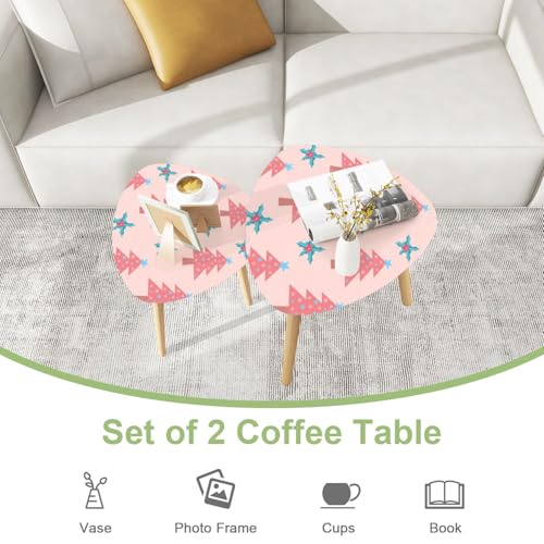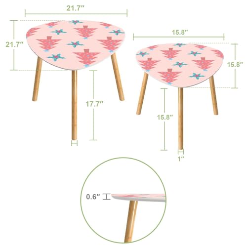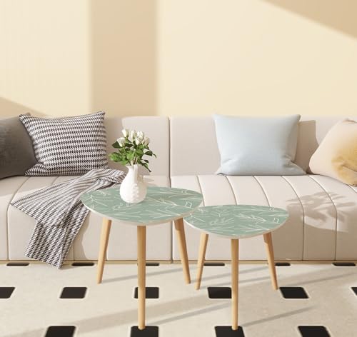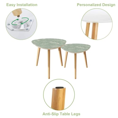 Triangle Nesting Coffee Table Set of 2 Green forest pine tree Park separate objects Modern Minimalist Side Table Small End Table Leisure Tea Table Living room Bedroom Office