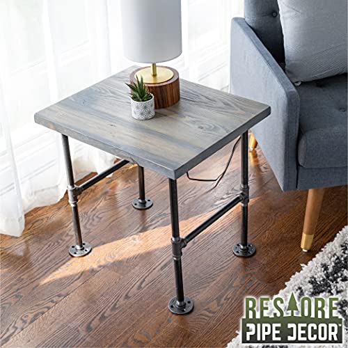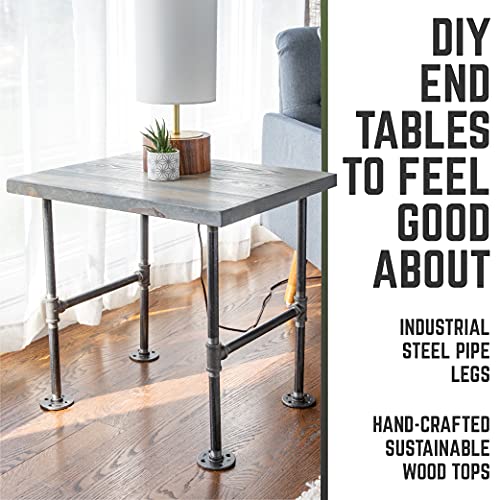 PIPE DECOR Sunset Cedar Solid Wood Rustic 18” End Table Kit with (4) 18” Matte Black Metal Legs, Industrial Side Table