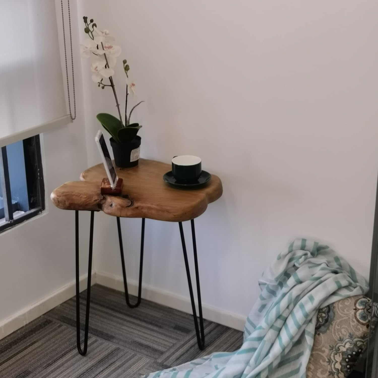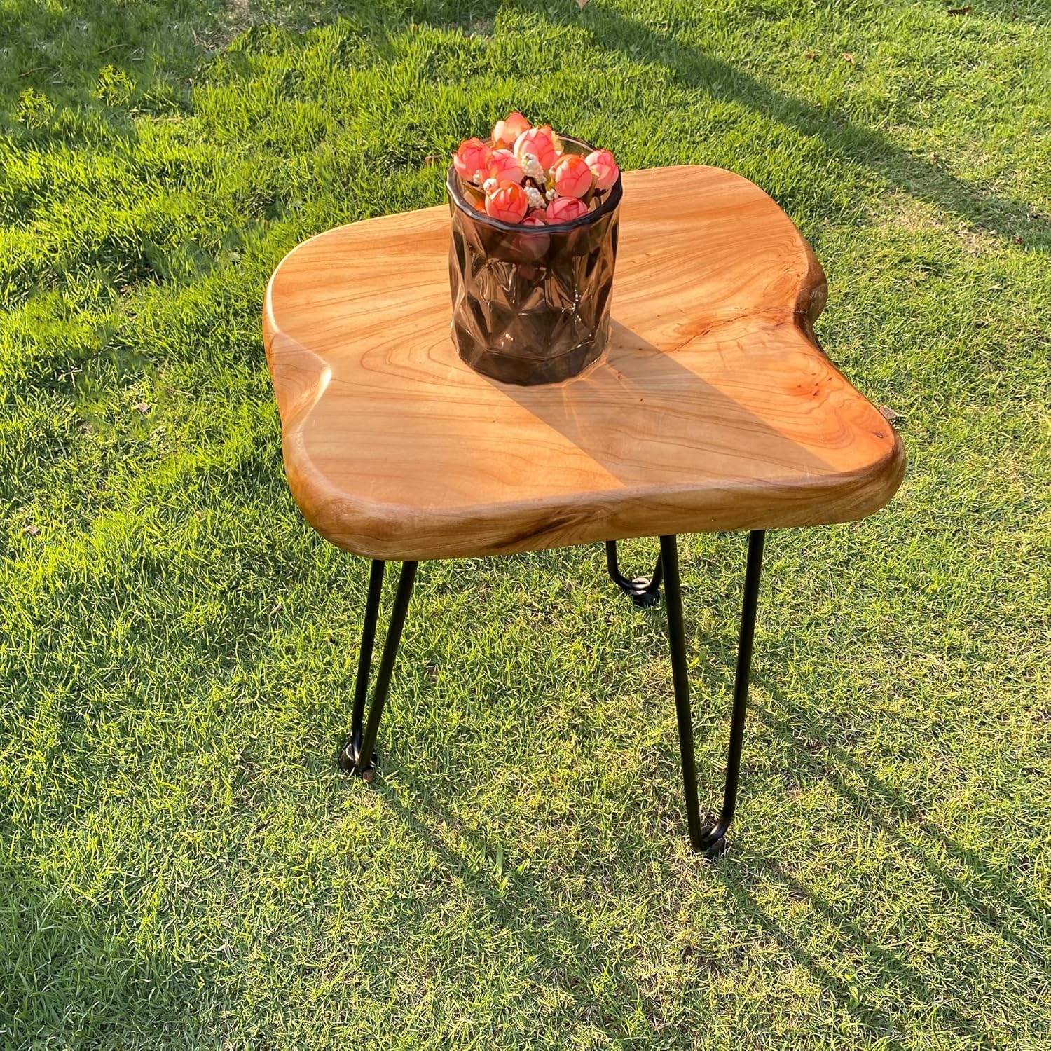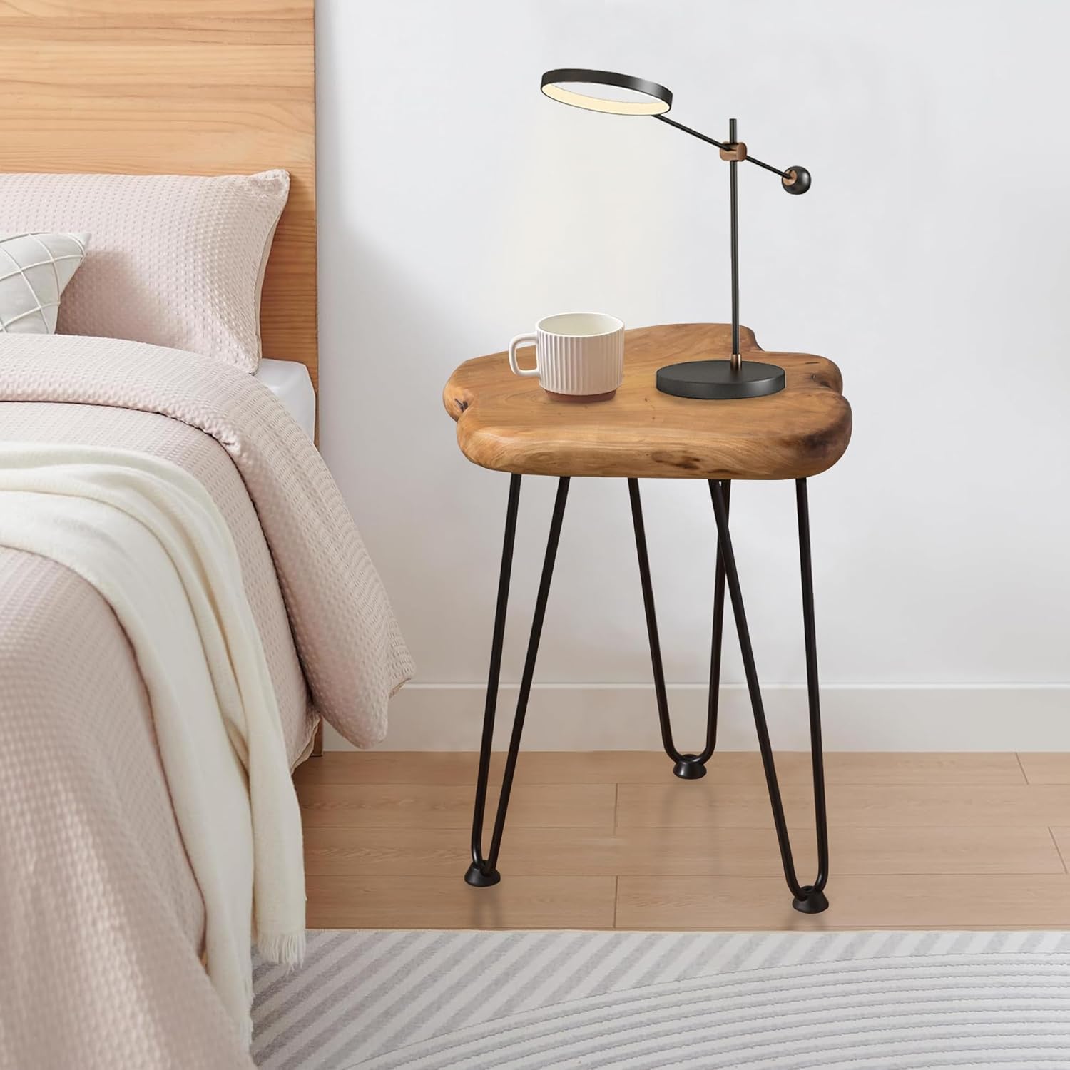 Brefhome Set of 2 Live Edge Wood End Table with Metal Legs,Rustic Coffee Side Table- Used in Living Room or Bedroom - 18.1" Tall