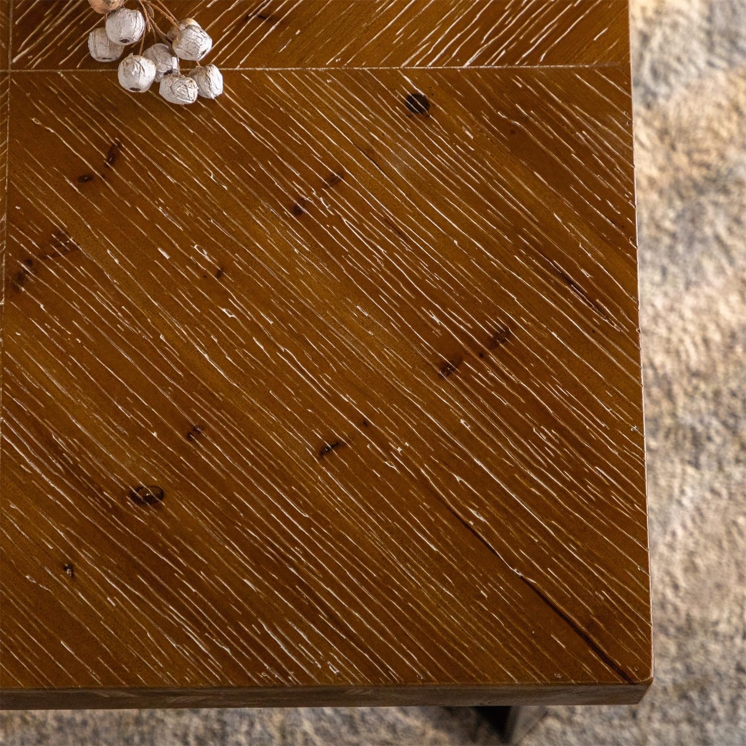 Restore by Pipe DÉCOR Wood End Table 22 in. x 18 in. x 20.88 in. Reclaimed Ponderosa Pine Wood in Sunset Cedar Stain with Industrial Pipe Legs