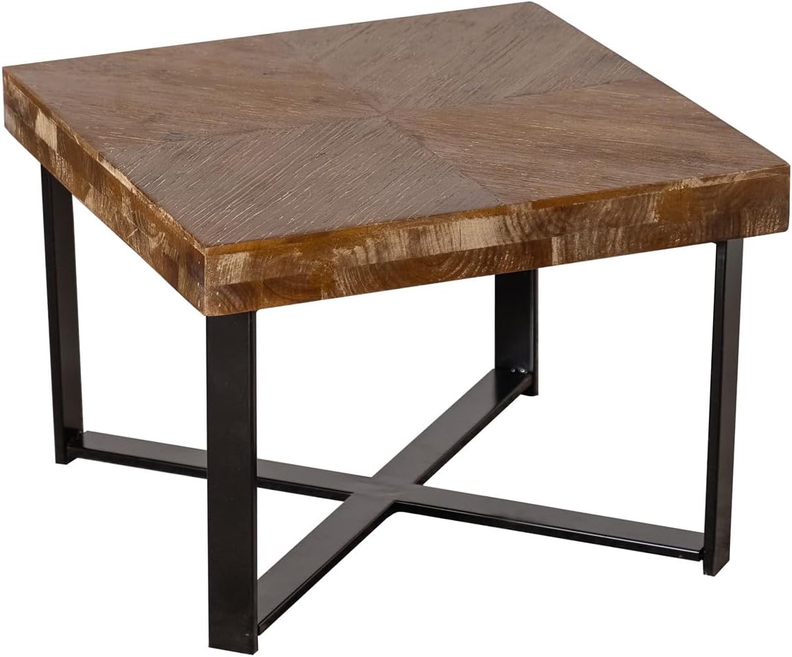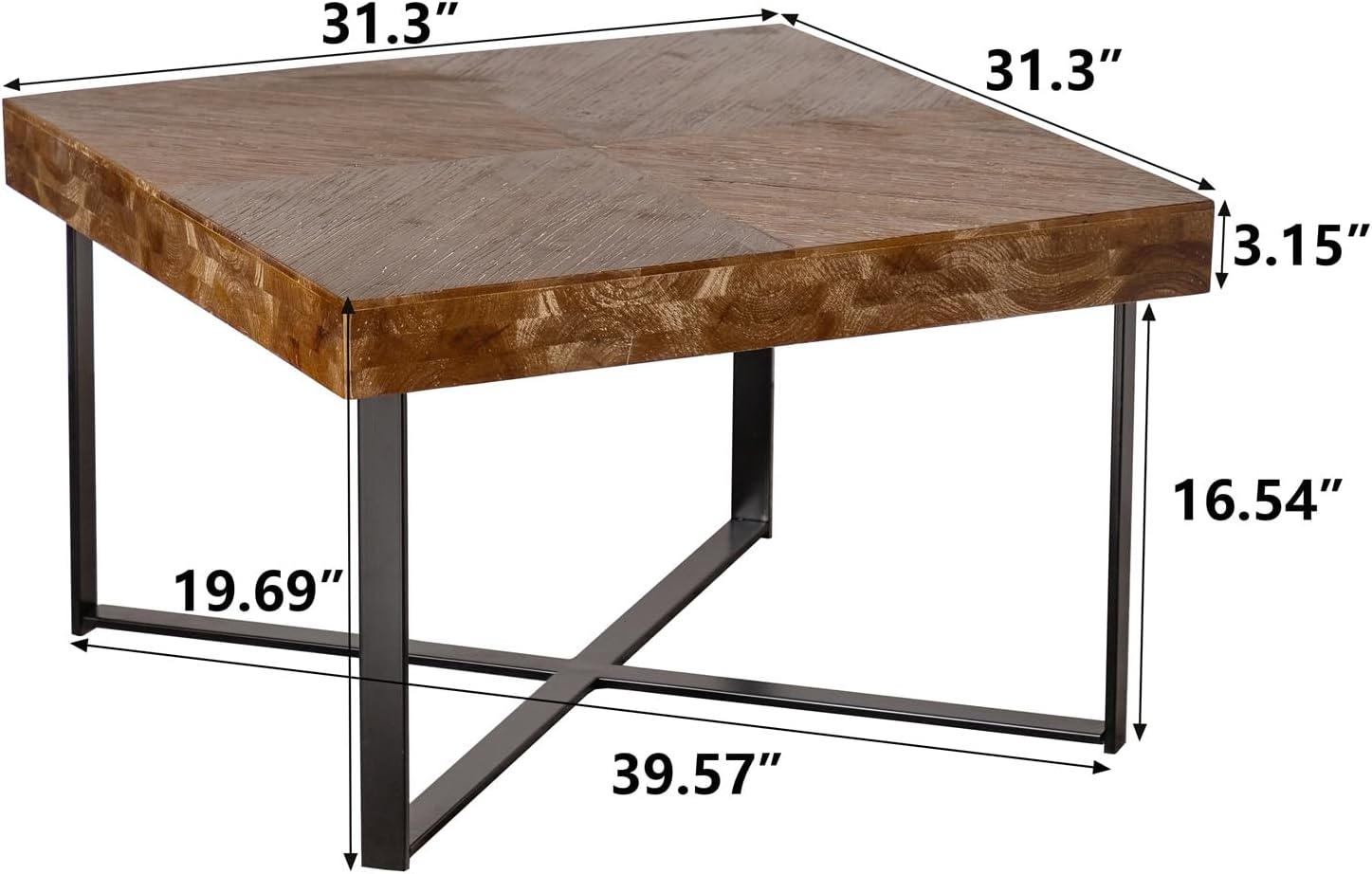 ZeHuoGe Retro Splicing Square Coffee Table Set of 2,Snack Table with Fir Wood Table Top and with Cross Legs Metal Base,Wood Table,Side Table Suitable for Living Room,Office,Dining Room