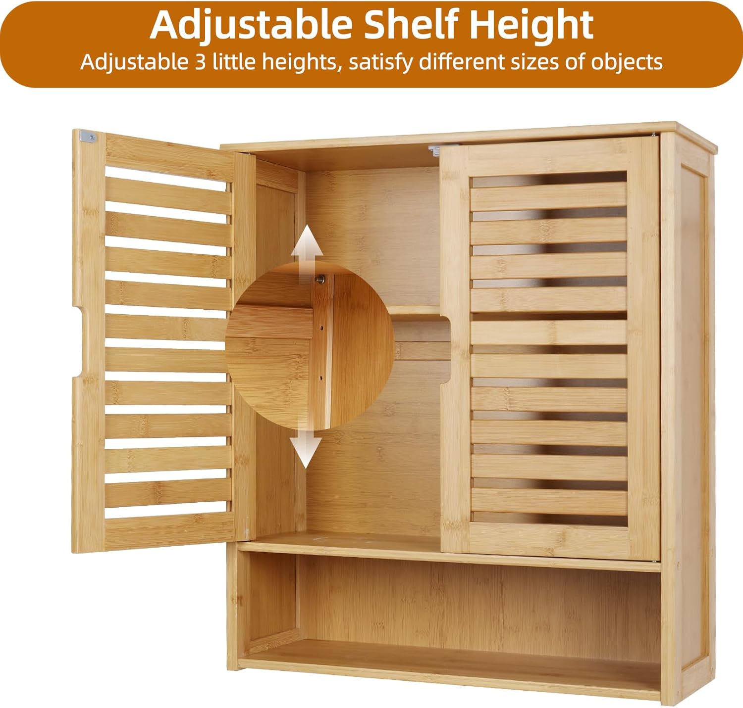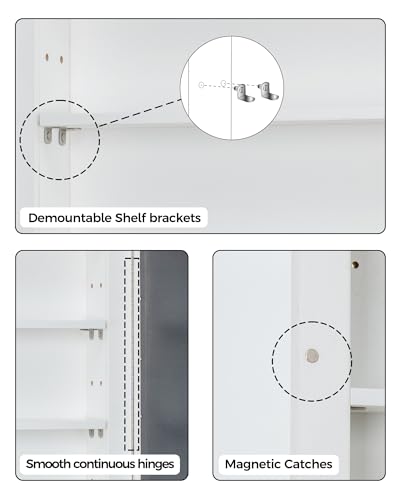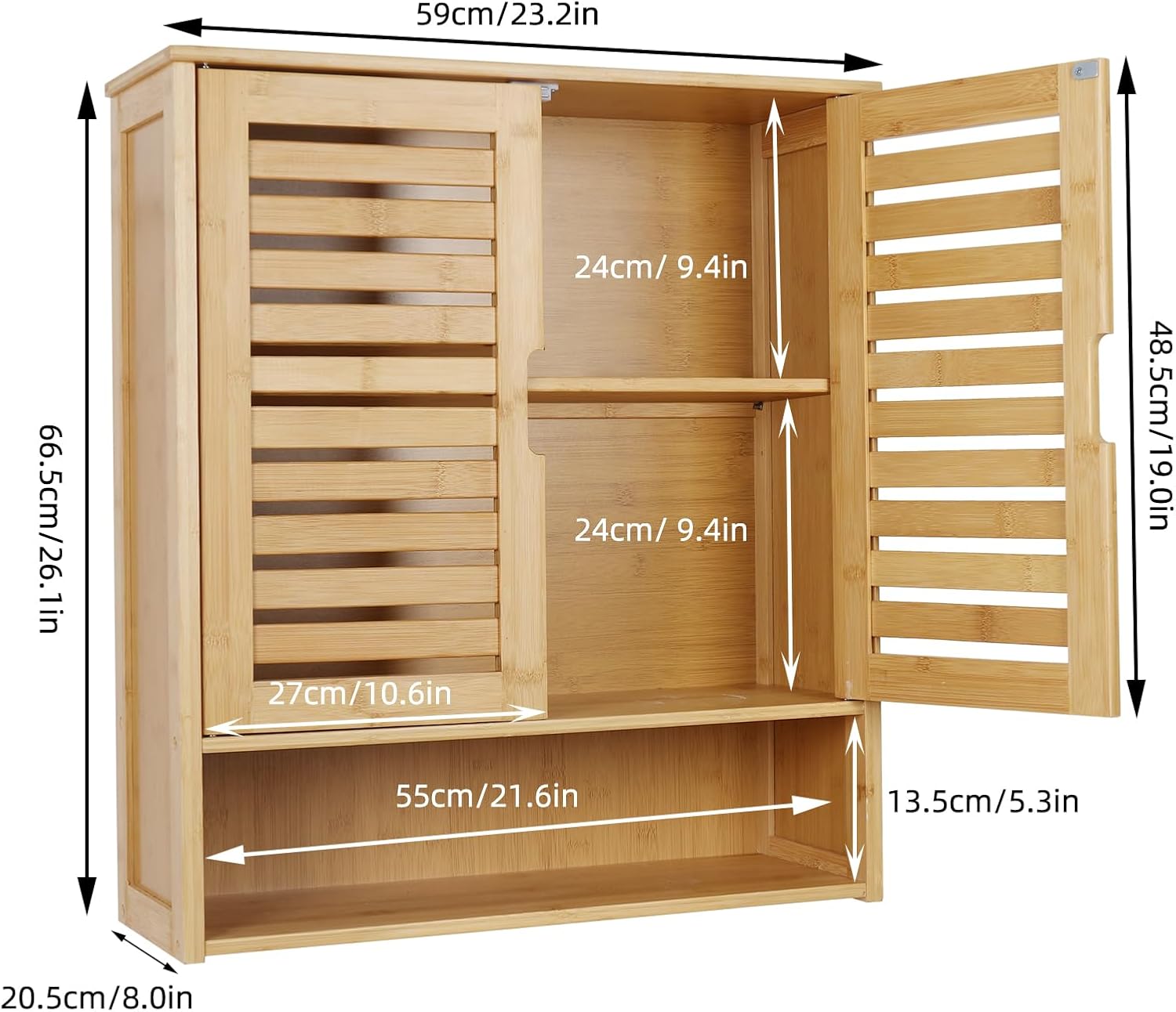 Wisfor Wood Wall Mounted Storage Cabinet: 3-Tier Shelves Medicine Cabinet with Two Door for Bathroom, Kitchen, Living Room, 23 x 26 inch