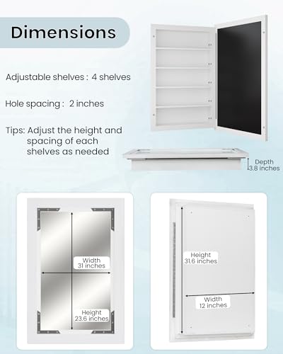 Medicine Cabinets Mirror 24" x 16", White Recessed or Wall Mounted Vanity Mirror with Storage Shelves, Modern Medicine Cabinet Mirror (Black)