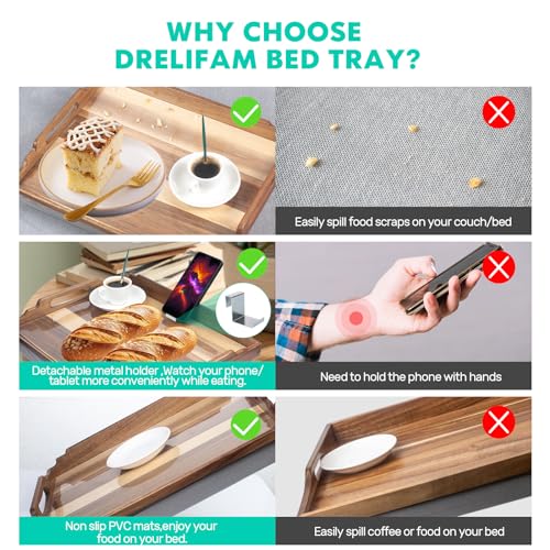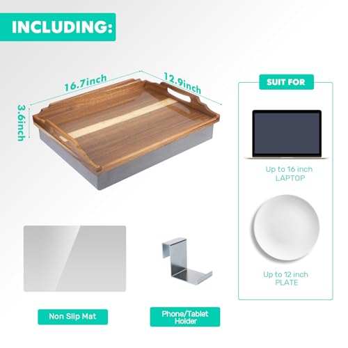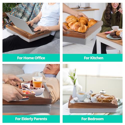 Lap Desk with Cushion,Wooden Bed Tray Table for Eating,Lap Tray in Recliner,Breakfast Tray,TV Dinner Bed Food Trays (Acacia Wood 1)