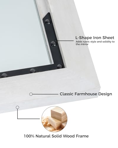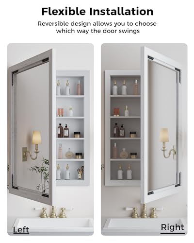 Medicine Cabinet Mirror 16 x 24 Inch Farmhouse Bathroom Mirror Door Paulownia Wood Storage Cabinet with Adjustable Shelves, Wall Mounted for Bathroom Living Room, Grey