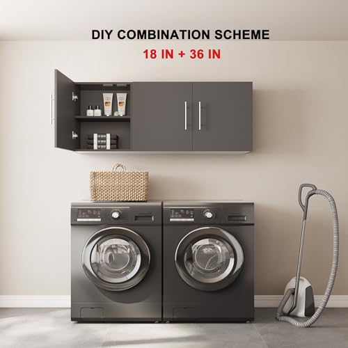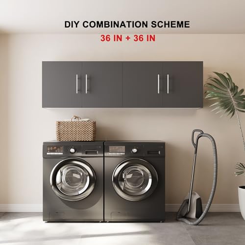 Wall Cabinet, 36" W x 12" D x 20" H Wooden Wall Mounted Storage Cabinet, Double Door Cabinet with Soft Close and Metal Handle and Adjustable Shelf, for Kitchen, Garage, Laundry, Bathroom, Black