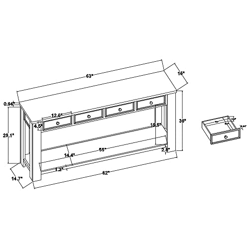 P PURLOVE 63 Inch Wood Console Table Long Console Sofa Entryway Table with Drawer and Bottom Shlef